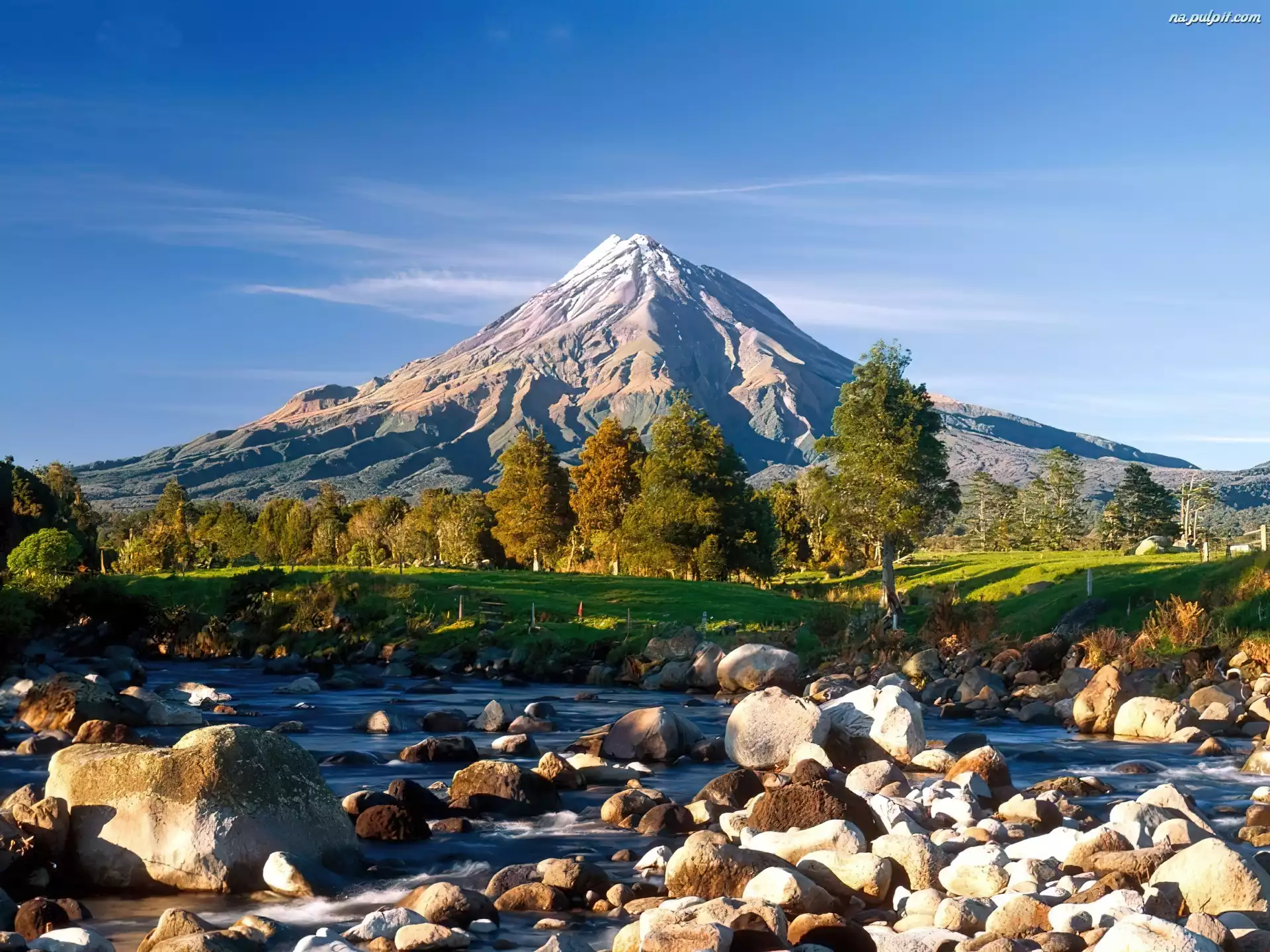 Rzeka, Góra, Nowa Zelandia, Skała Na Pulpit