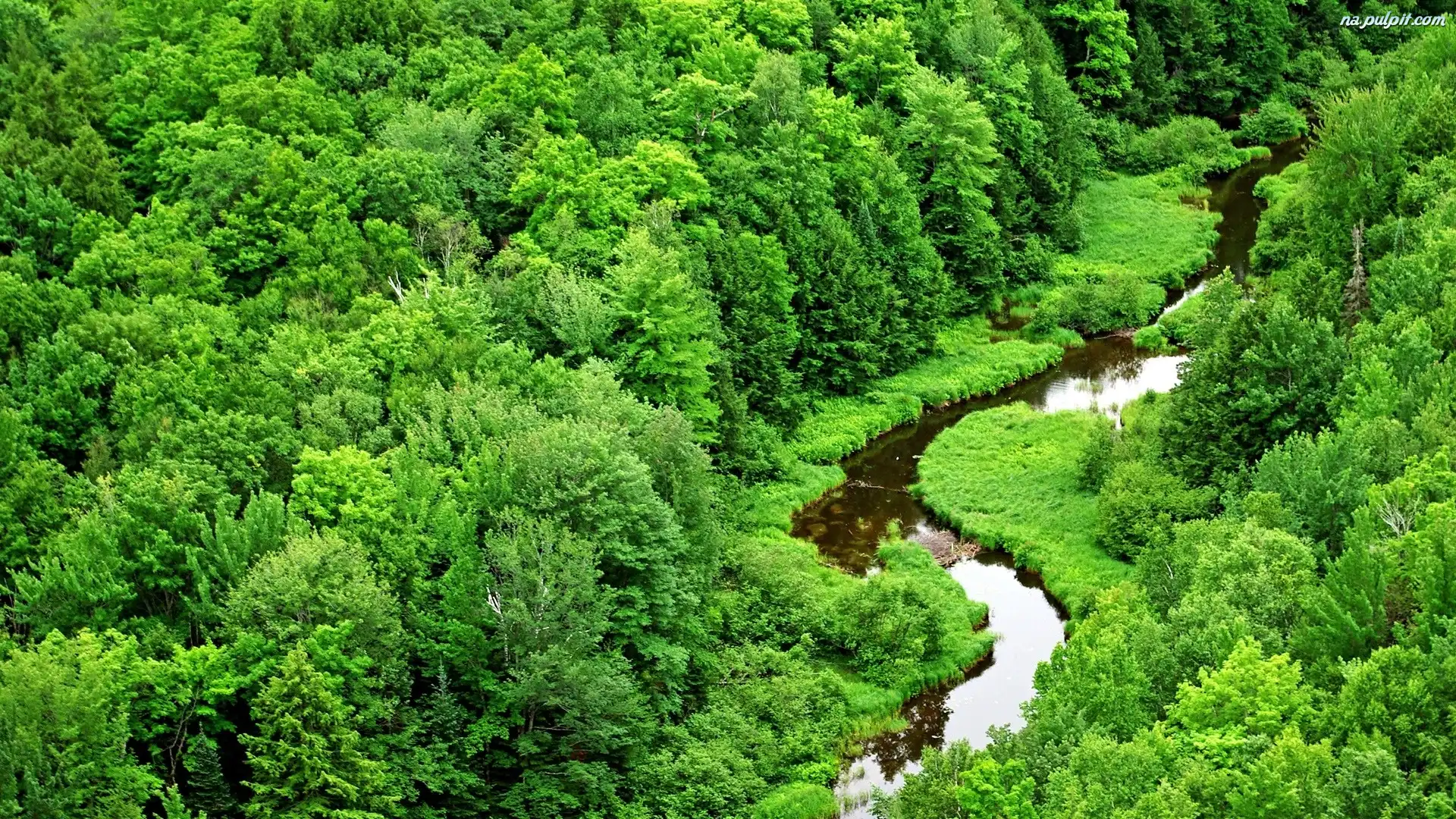 Rzeka, Las, Zielony, Meandrująca Na Pulpit