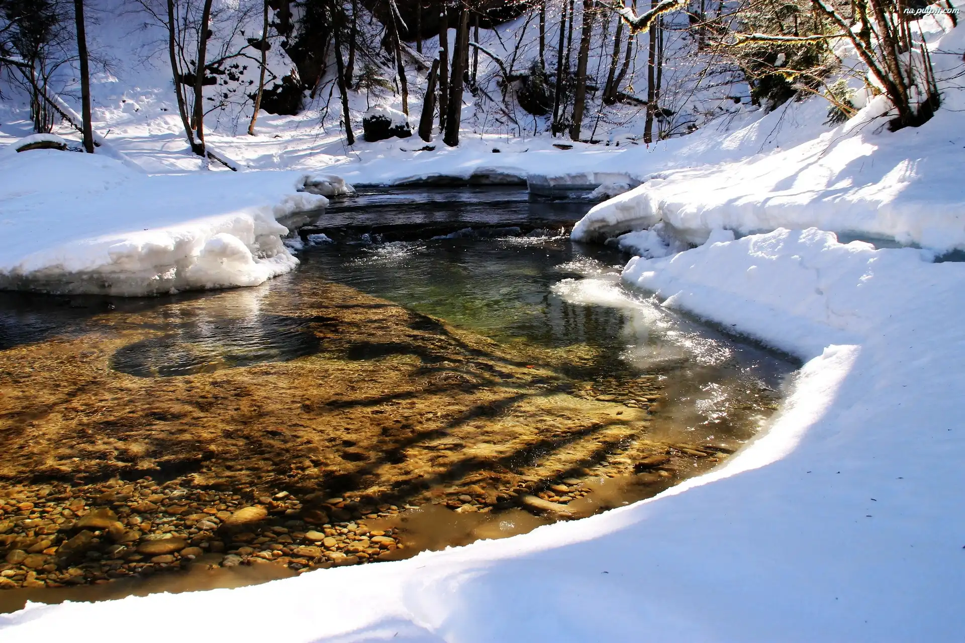 Rzeka, Åšnieg, Zima, Drzewa Na Pulpit