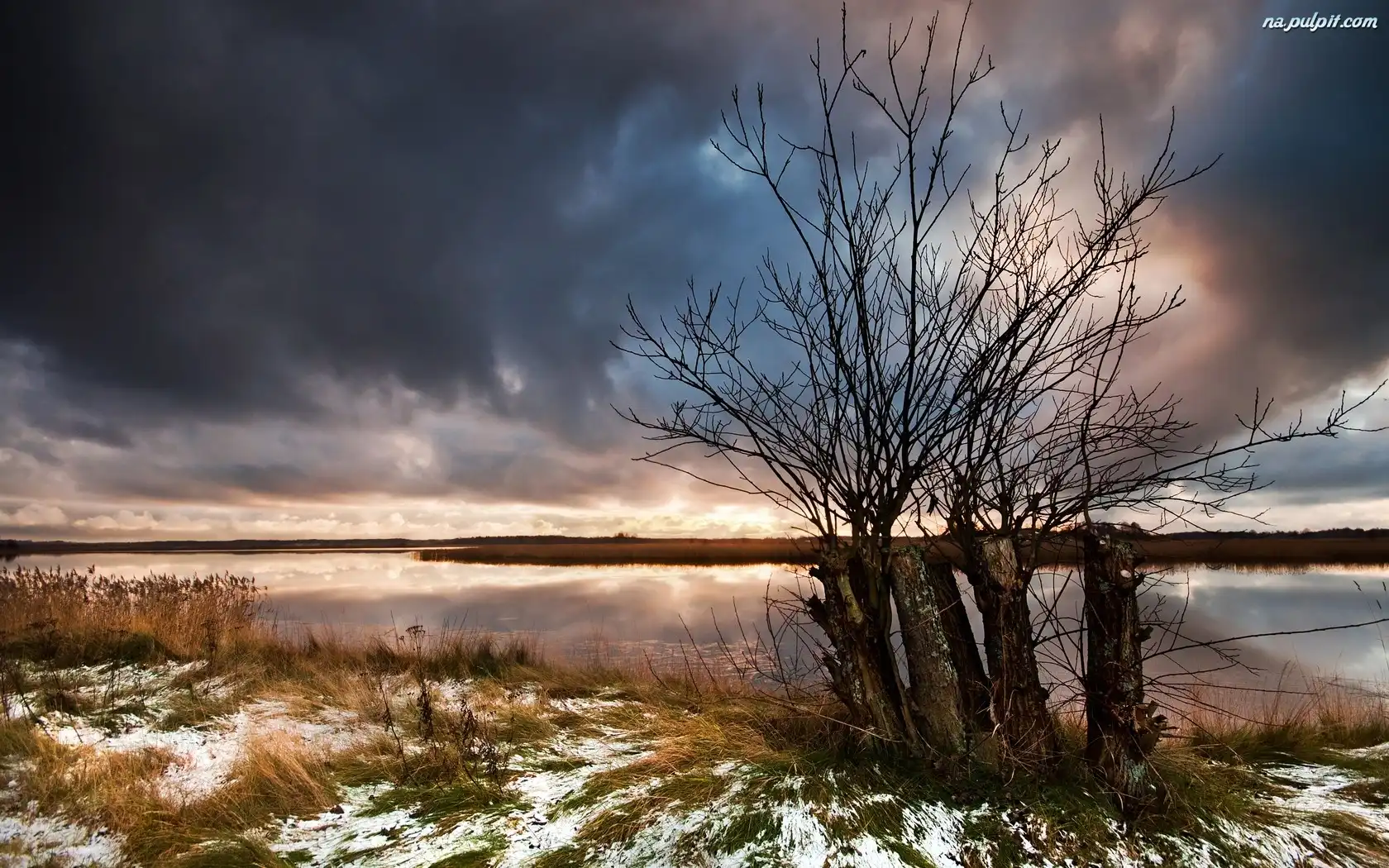 Rzeka, Pochmurne, Zima, Niebo Na Pulpit