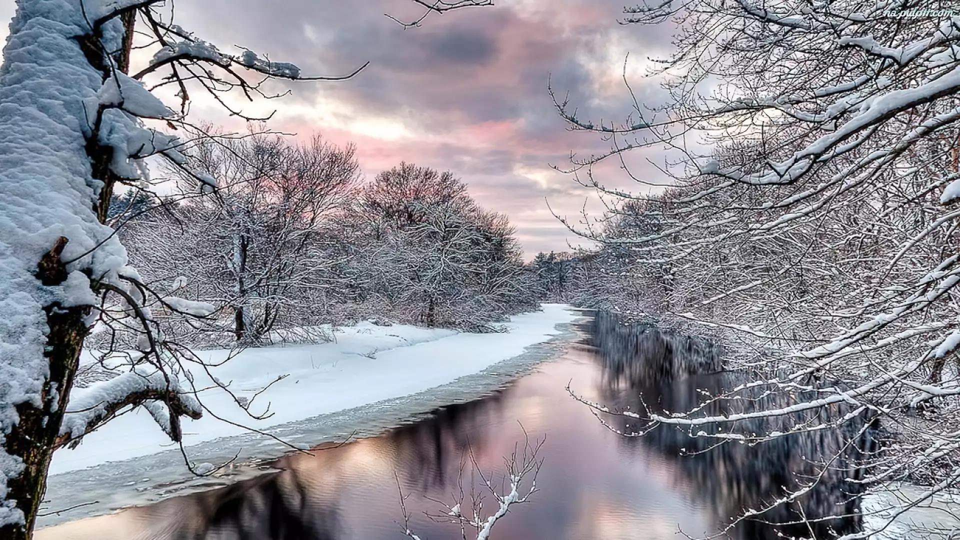 Drzewa, Rzeki, Ośnieżone Na Pulpit
