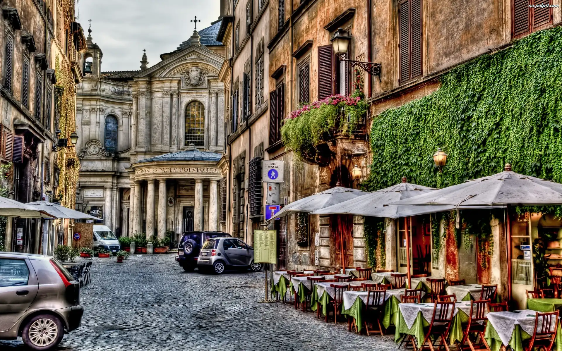 Rzym, Ulica, Domy, Restauracja