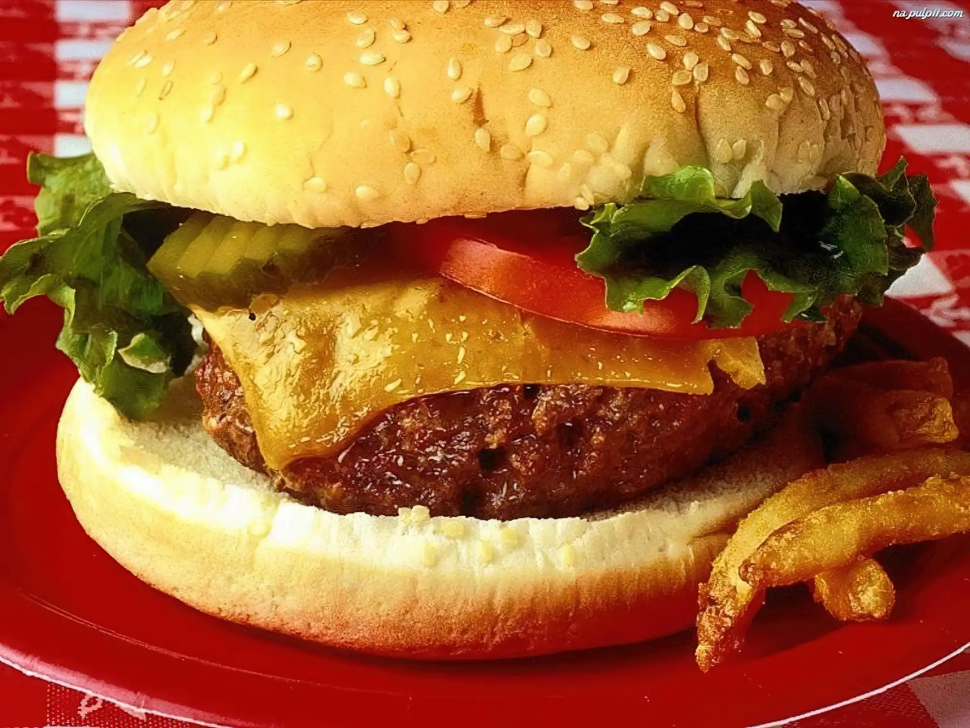 Sałata, Plasterki, Mięso, Hamburger, Pomidora Na Pulpit