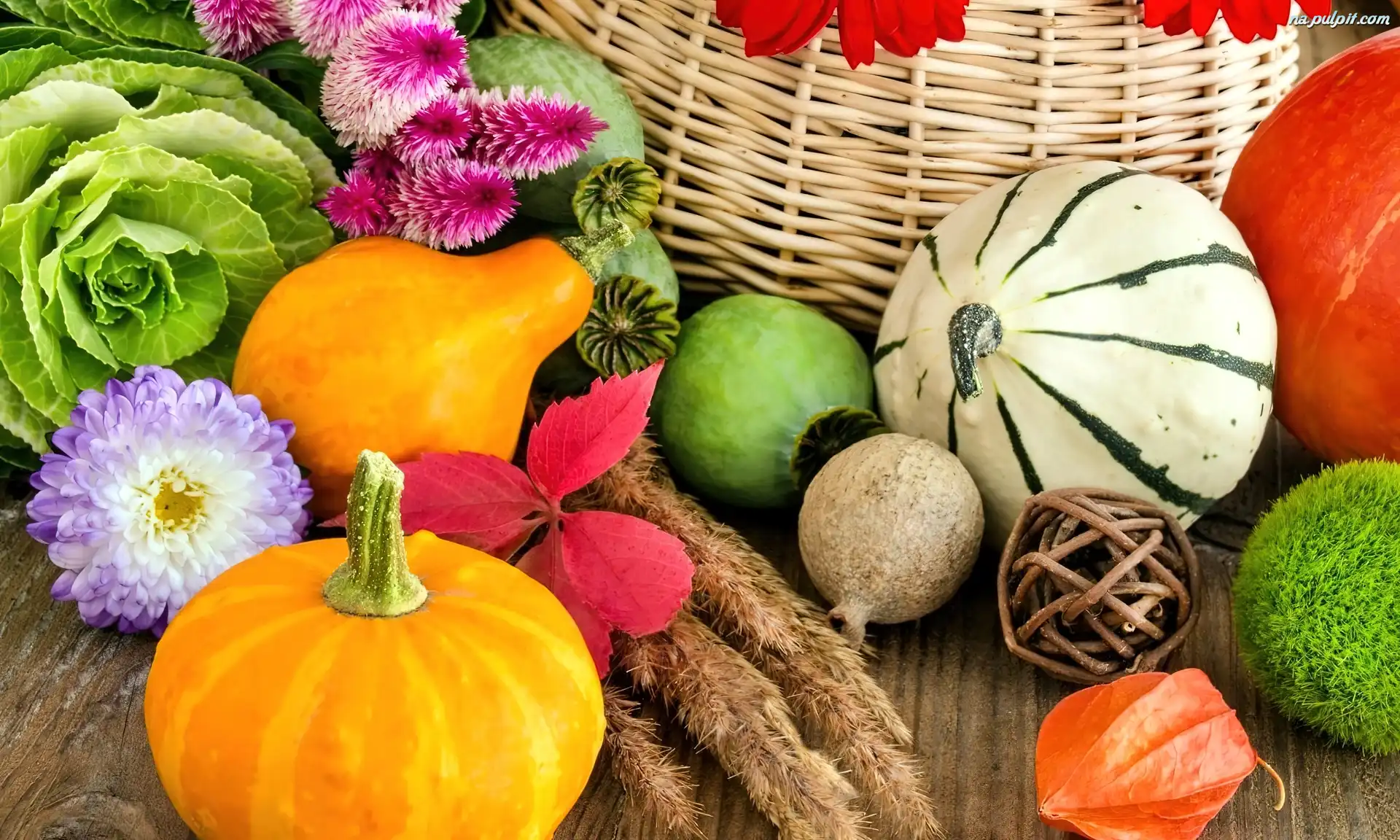 Sałata, Dynie, Kosz, Makówki