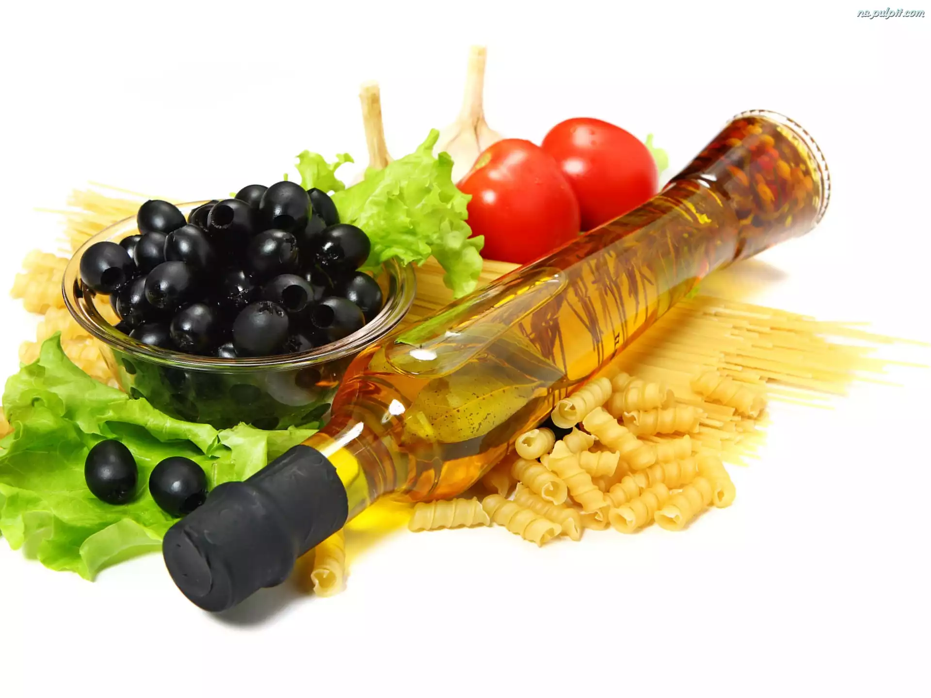 Sałata, Oliwa, Oliwki, Makaron, Pomidory Na Pulpit