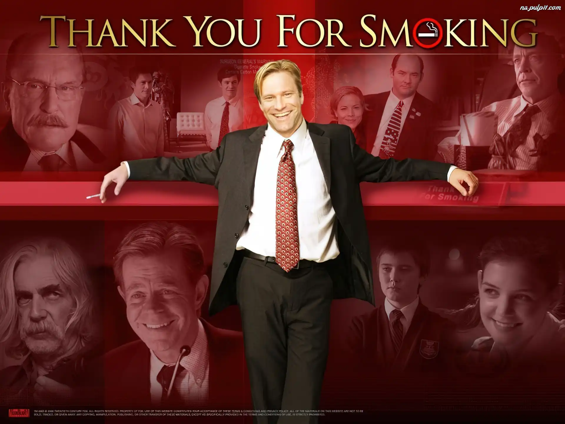 Sam Elliott, Aaron Eckhart, Maria Bello, William H. Macy, garnitur, Katie Holmes, Thank You For Smoking, Cameron Bright Na Pulpit |