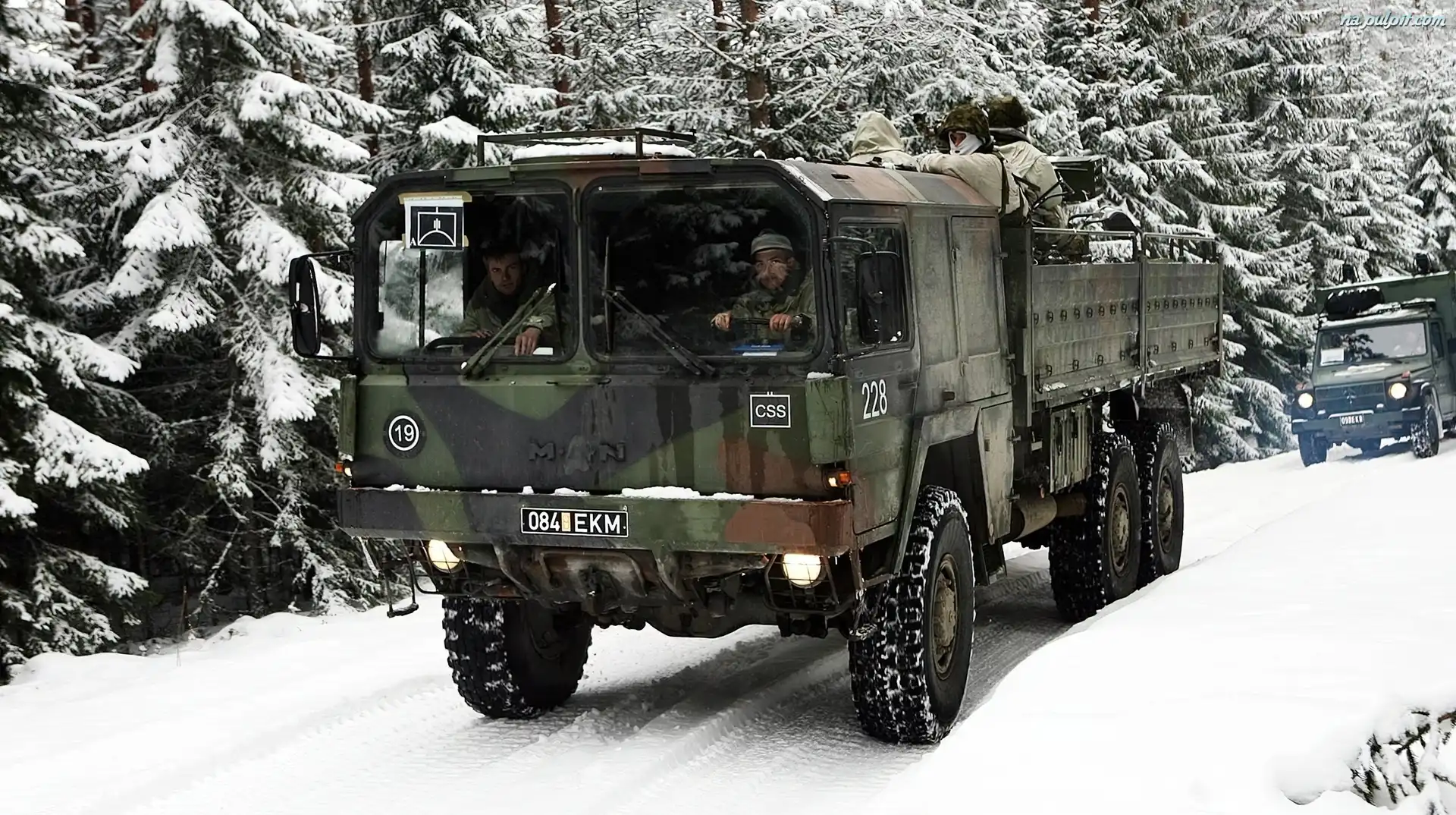 Samochód, Las, Droga, Wojskowy, Man, Ośnieżony Na Pulpit