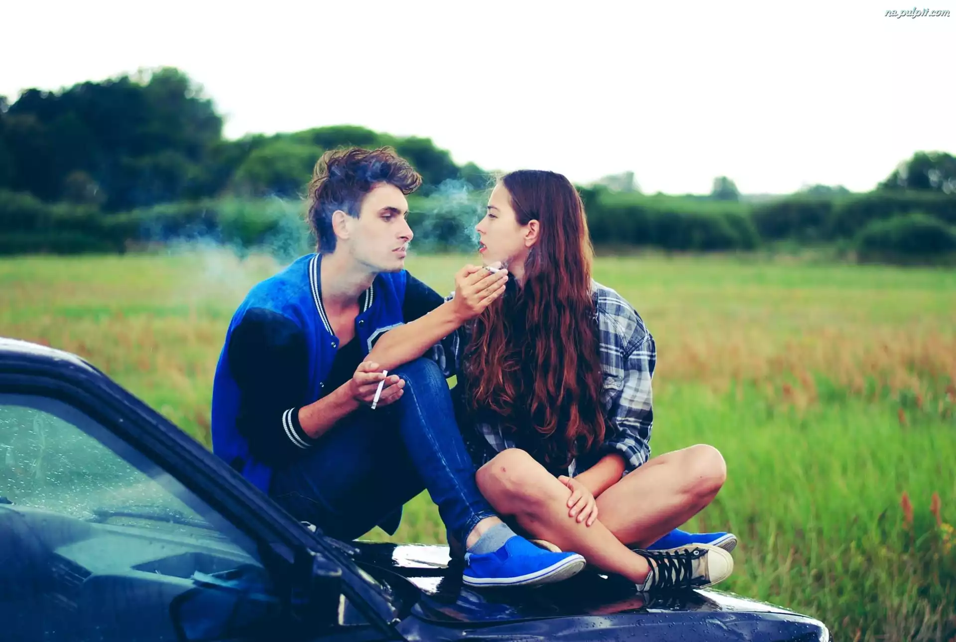 Samochód, Kobieta, Mężczyzna, Para, Papierosy
