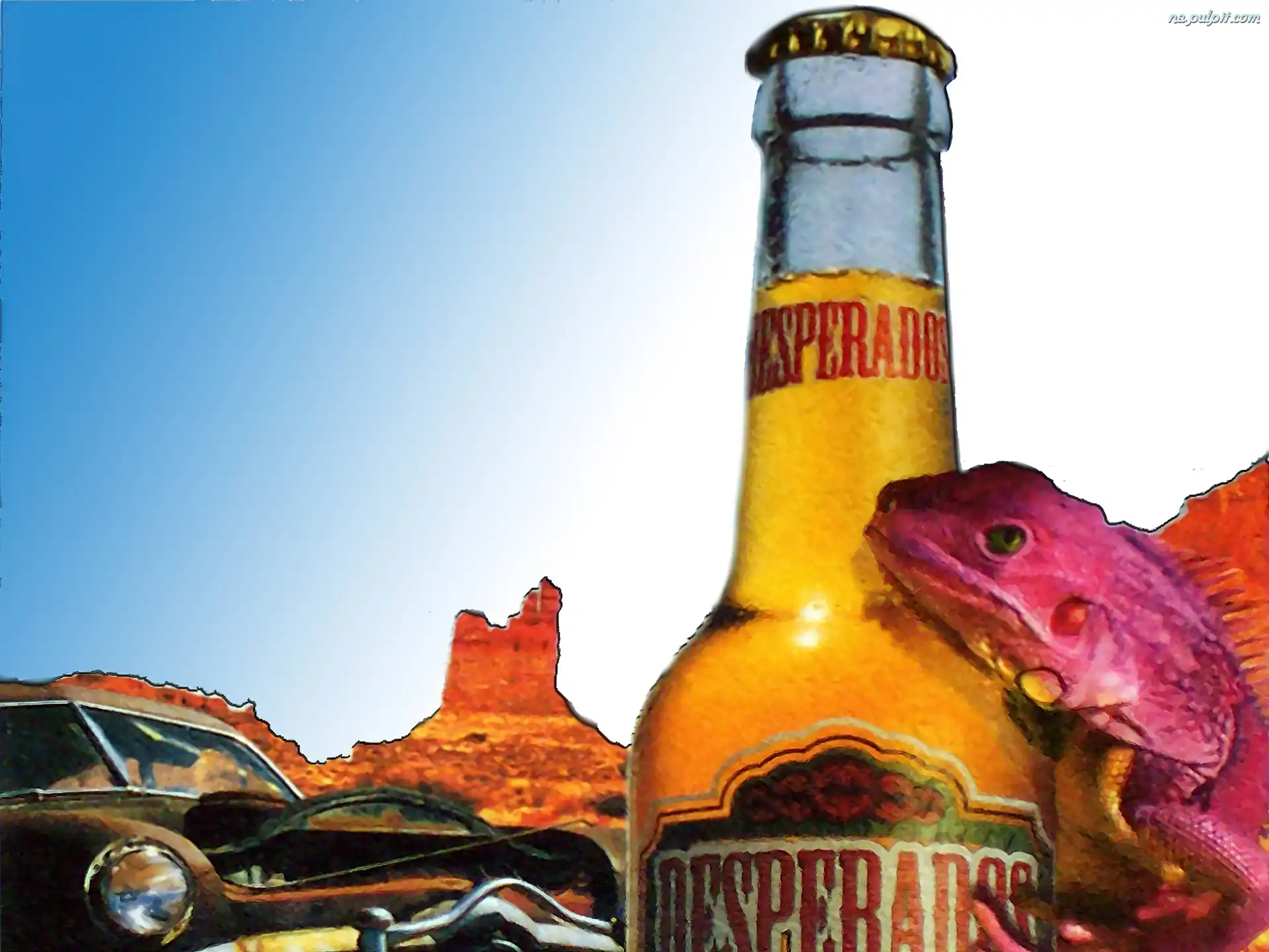 Butelka, Trawa Reklama, Mężczyzna, Desperados, Samochód Samochód, Desperados, Piwo, Jaszczurka Desperados, Karton, Piwa