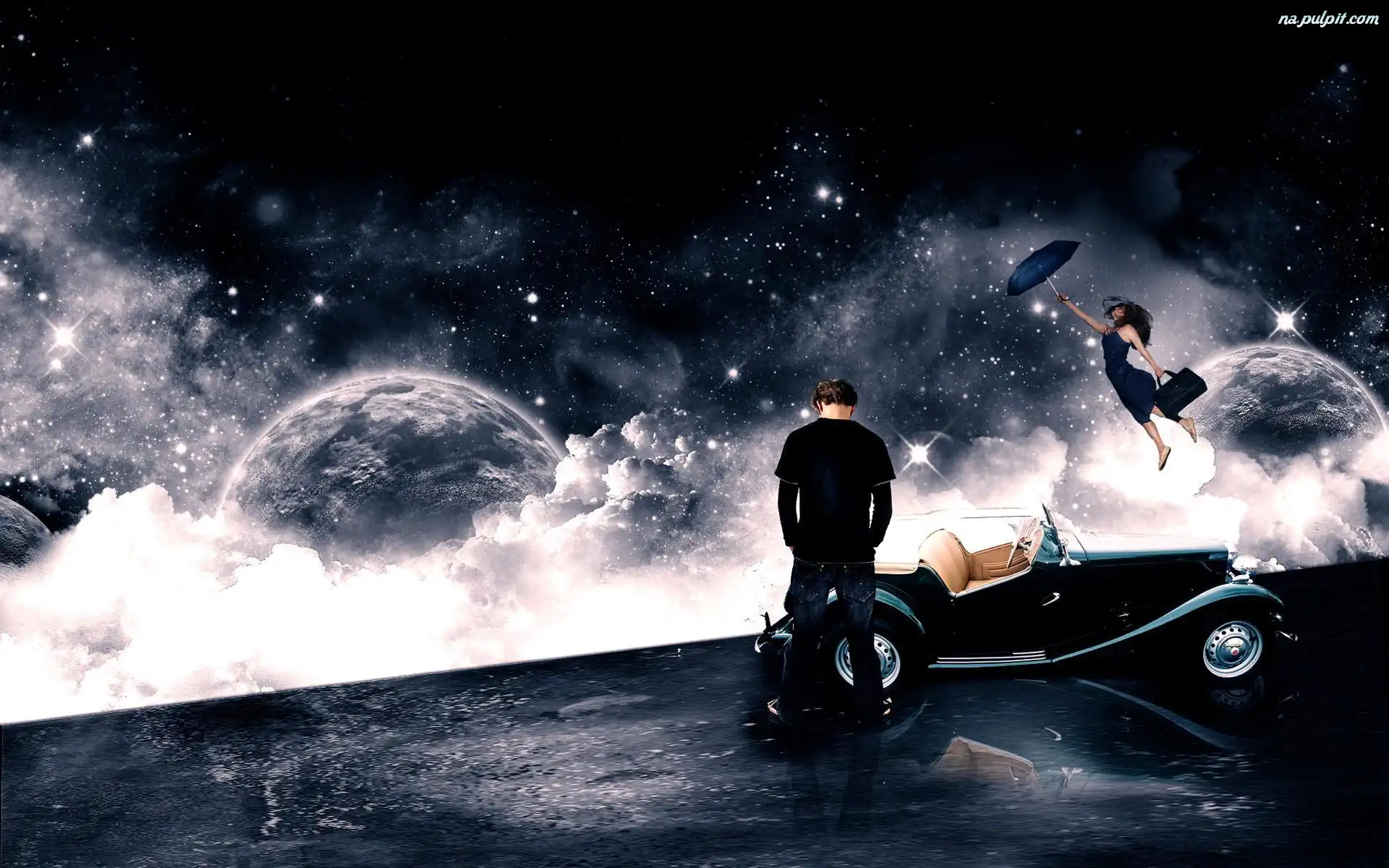 Samochód, Chmury, Planety, Parasolka Na Pulpit