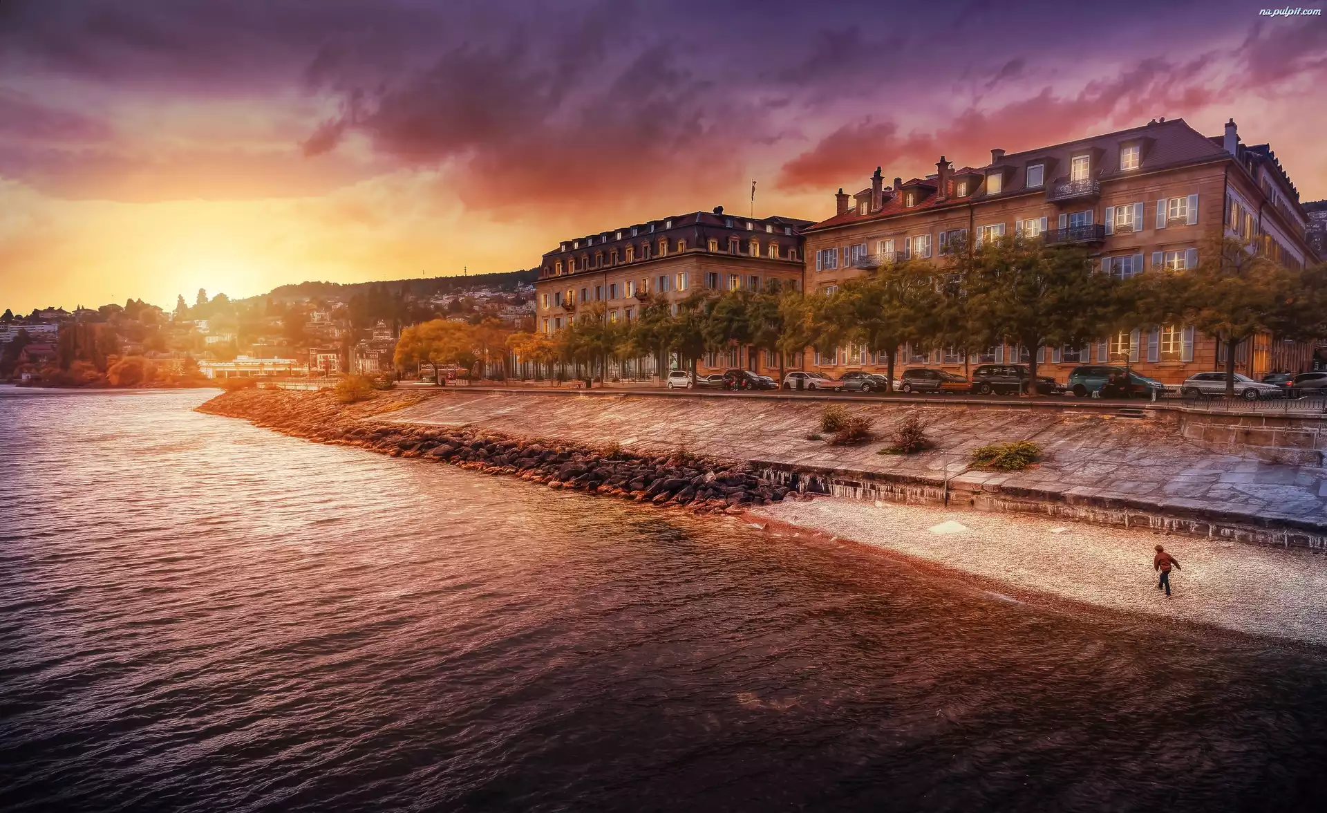 Samochody, Domy, Rzeka, Jesień Na Pulpit