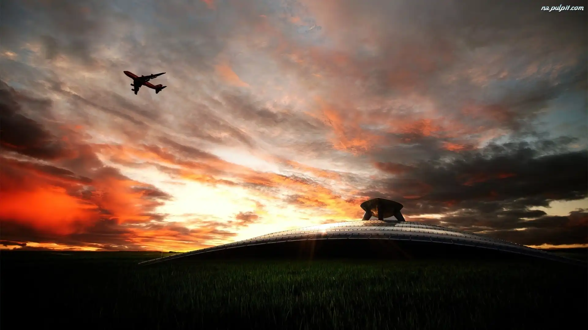 Samolot, Zachód, Chmury, Słońca Na Pulpit