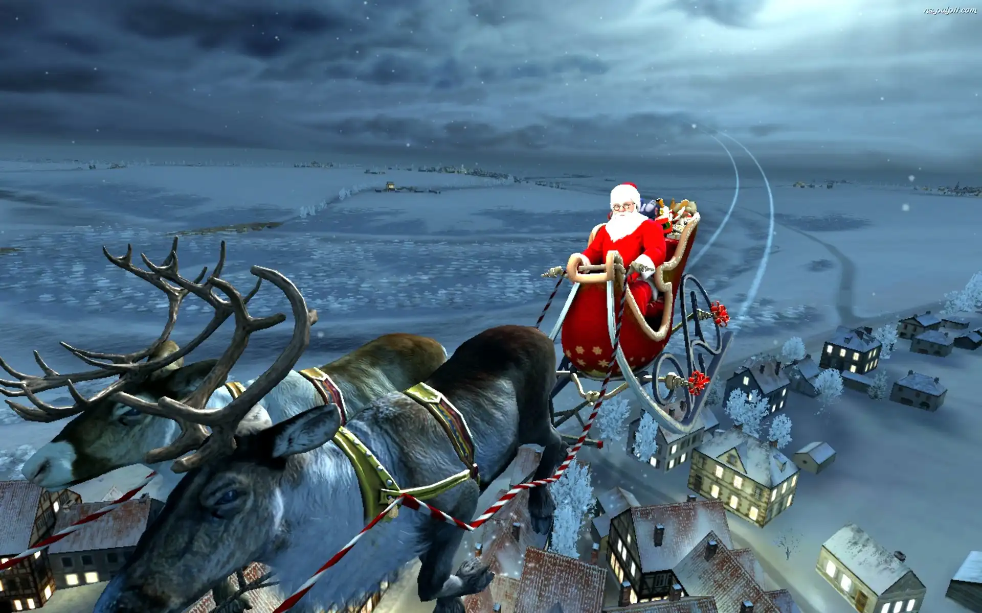 Sanie, Narodzenie, Obraz, Renifery, Mikołaj, Boże Na Pulpit