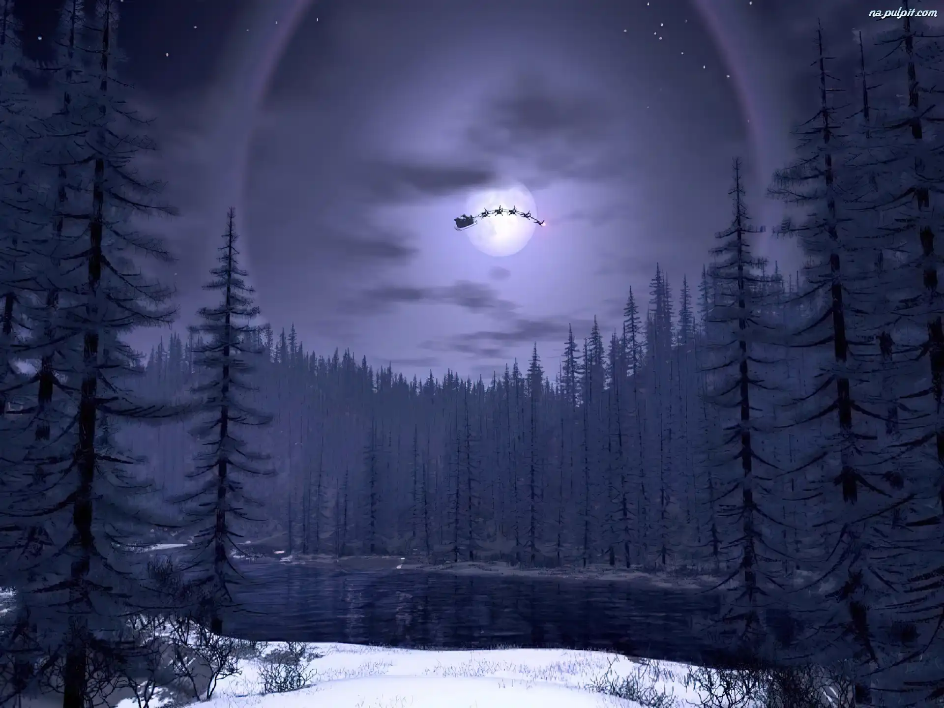 sanie mikołaja, Boże Narodzenie, księżyc