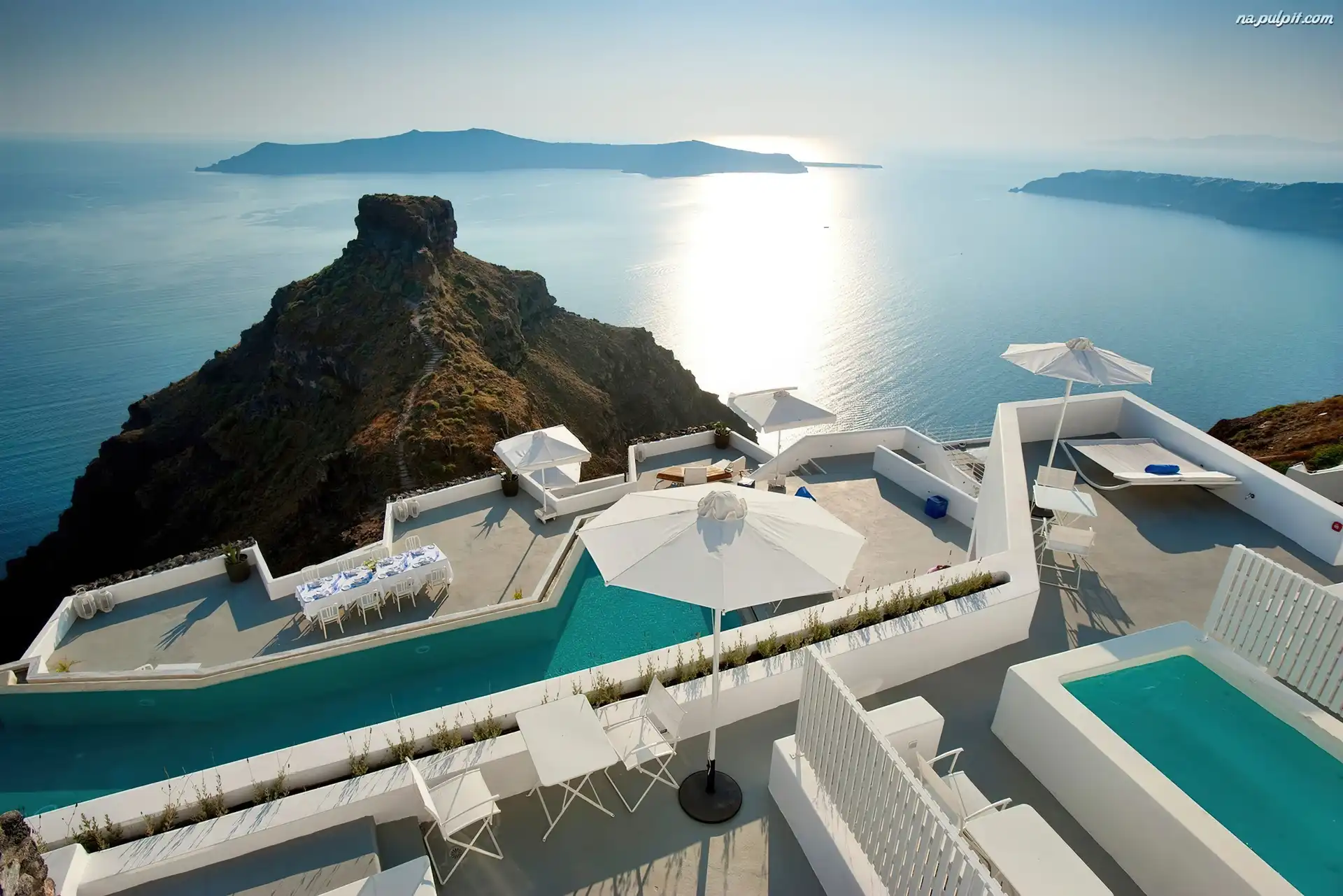 Grecja, Wysepka, Morze, Statek Grecja, Panorama, Basen, Taras, Kobieta Ateny, Grecja Palma, S艂o艅ca, Zach贸d, Jacht Grzbiet, Fali Santorini, Palmy, Basen, Kwiaty Wiatraki, Mykonos, Pla偶a, Grecja S艂o艅ca, Chmury, Morskie, Ba艂wany, Zach贸d Kamienie, G贸ry, Morze Europejska, Pa艅stw, Flagi, Unia Grecja, Budowla Jachty, Zatoka Wraku, Grecja, Statek 呕agl贸wki, Morze, Wybrze偶e Santorini