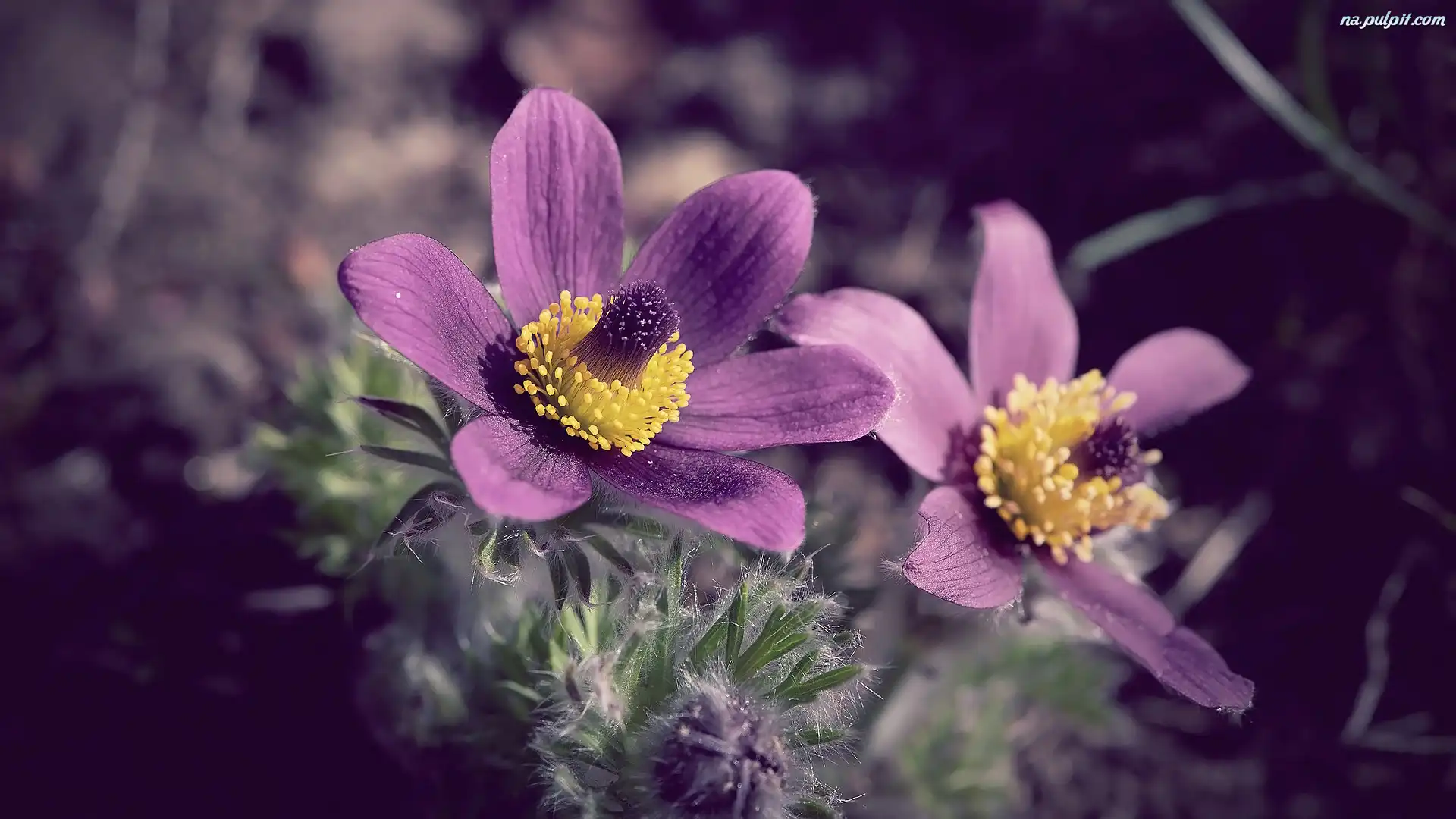 Kwiaty, Dwie, Fioletowe, Sasanki Na Pulpit