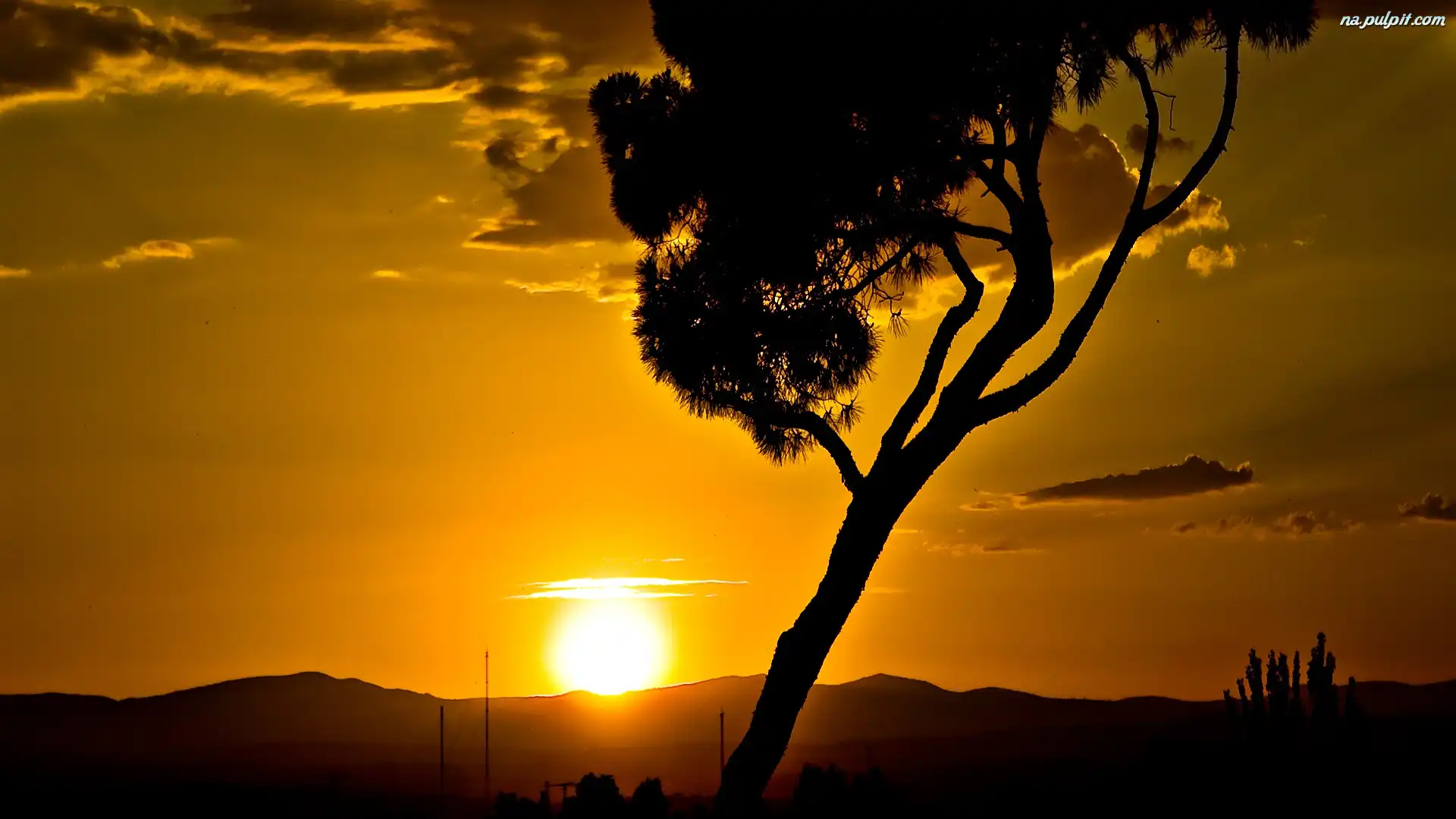 Sawanna, Słońca, Zachód, Drzewo Na Pulpit