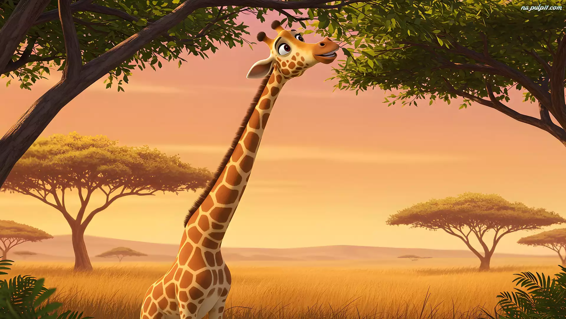 Żyrafa, Liście, Drzewa, Sawanna Na Pulpit