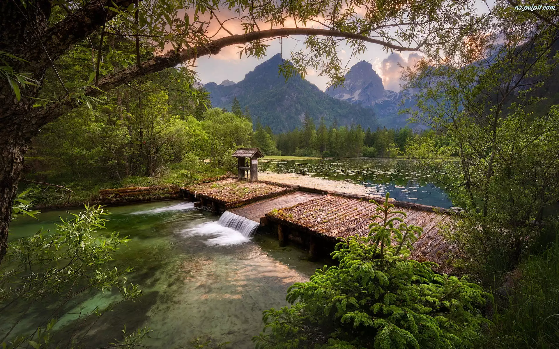 Drzewa, Austria, Jezioro, Schiederweiher, Góry, Zapora Na Pulpit