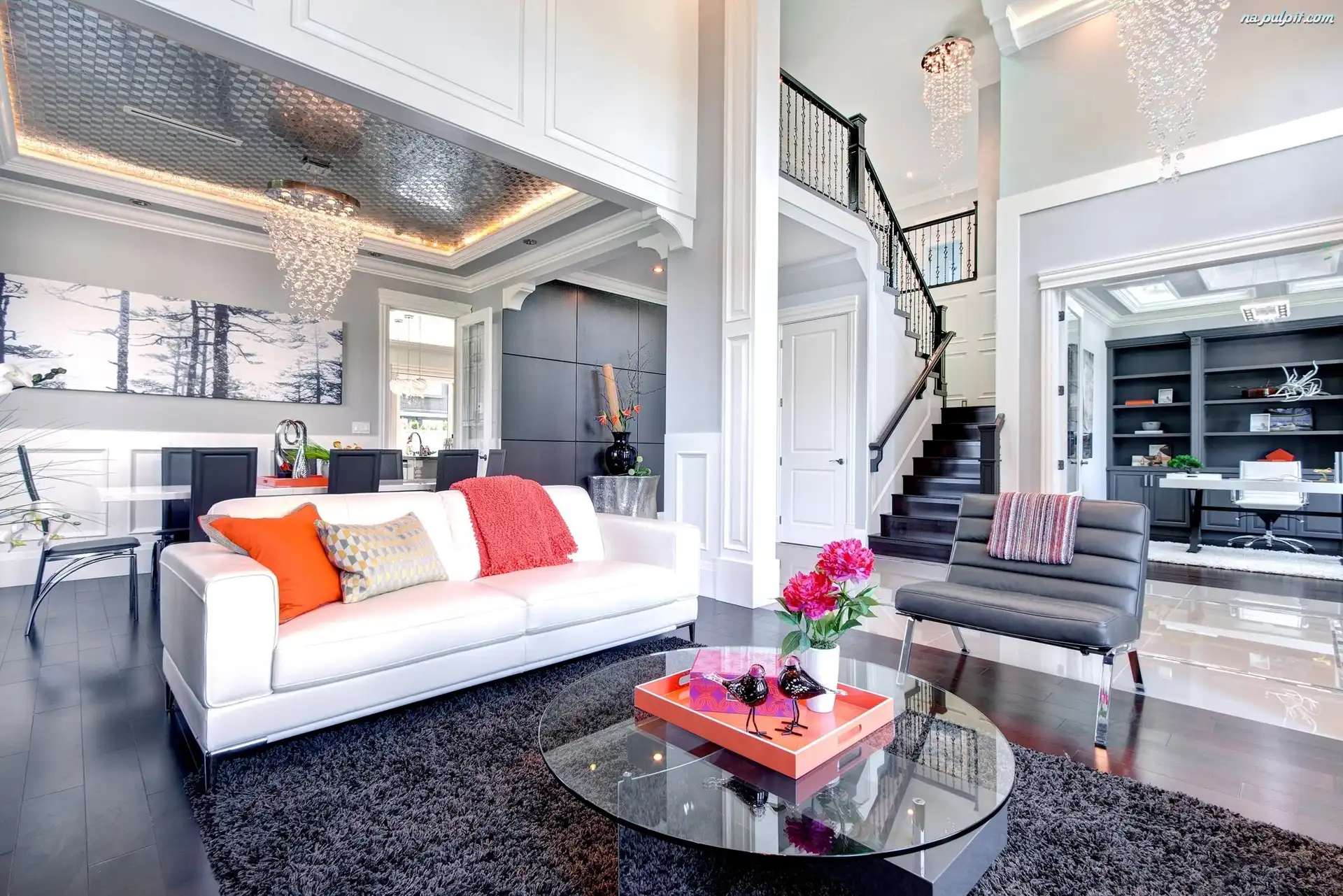 Schody, Salon, Biały, Przestrzeń Na Pulpit