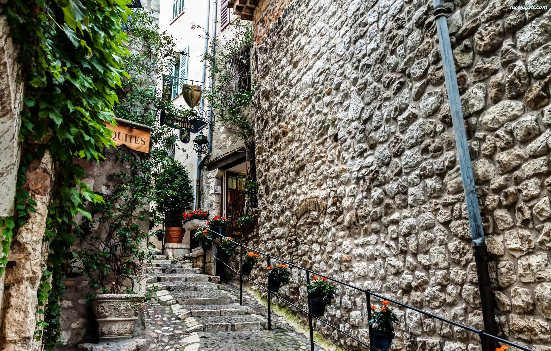 Lazurowe Wybrzeże, Szyldy, Kawiarnia, Francja, Saint-Paul-de-Vence, Schody