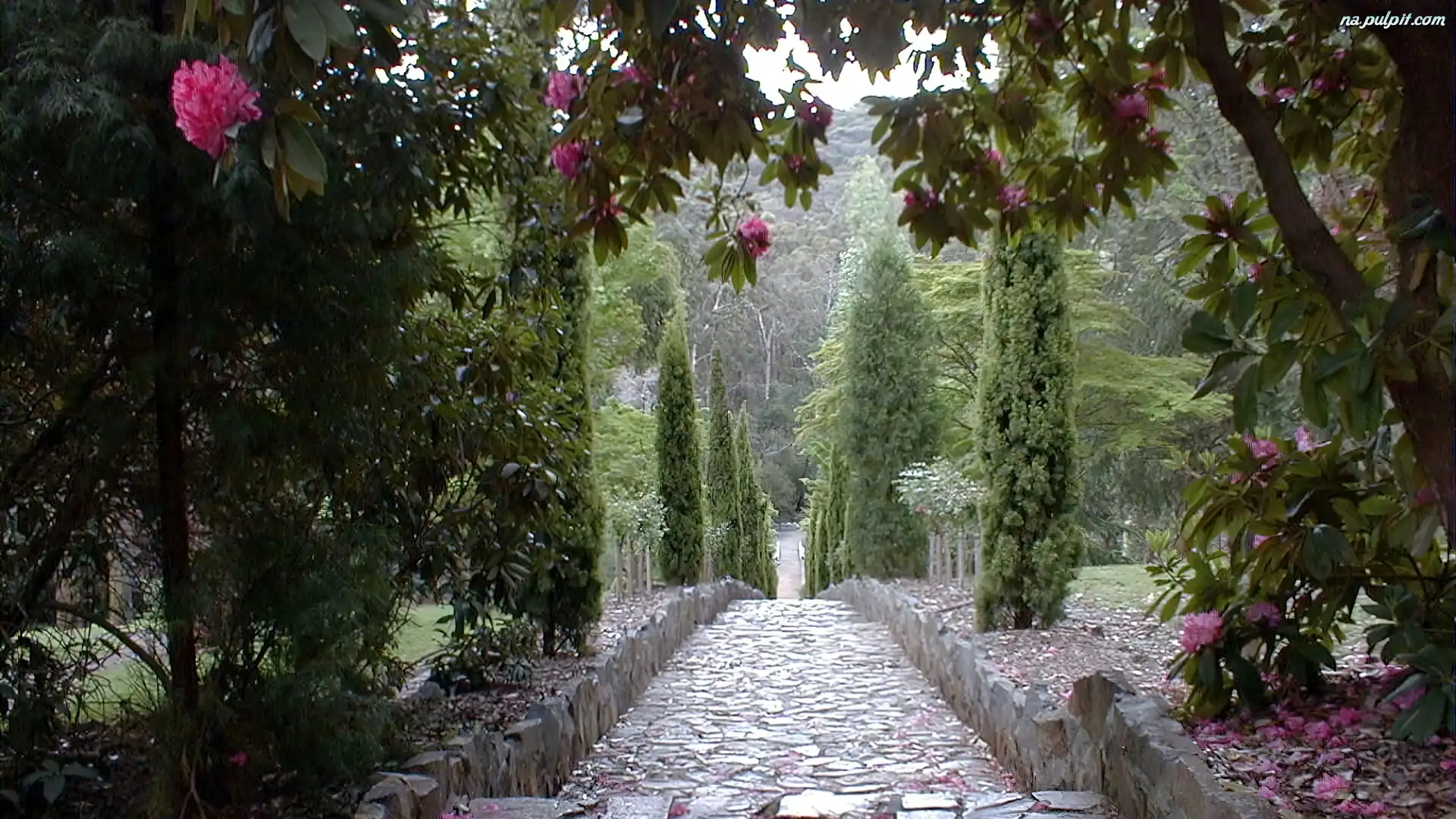 Schody, Drzewo, Kwitnące, Iglaki, Kamienne Na Pulpit