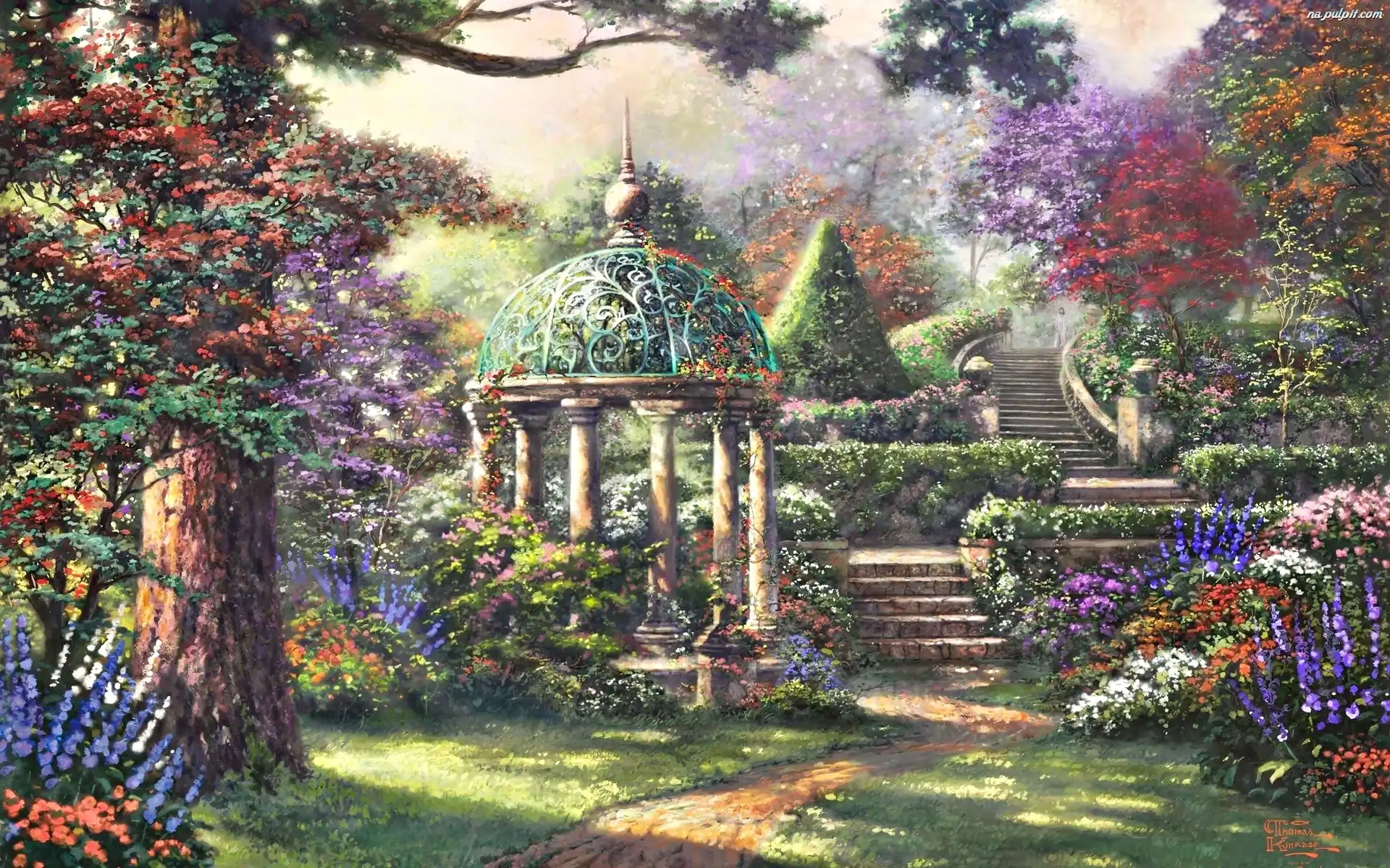 Schody, Zieleń, Park, Kwiaty Na Pulpit