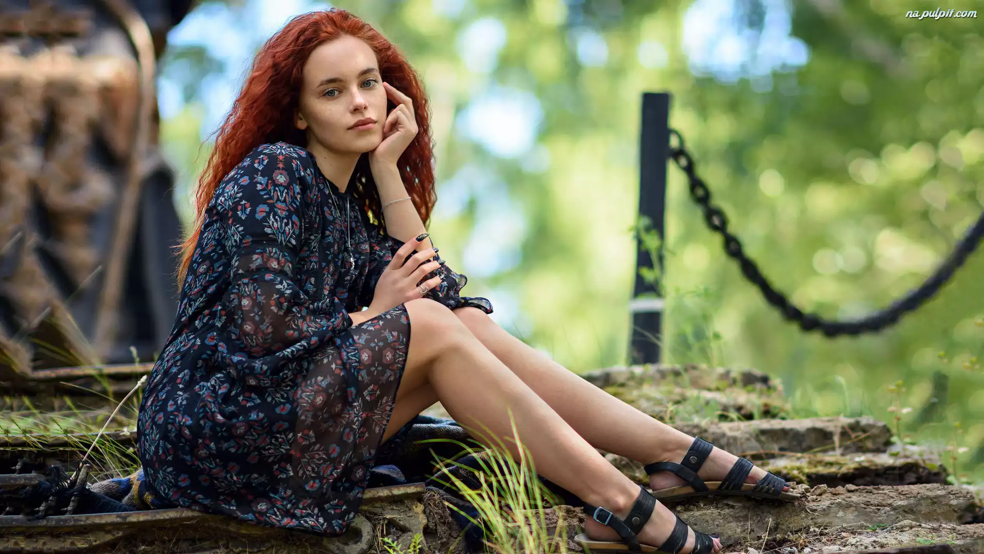 Schody, Kobieta, Rudowłosa, Sukienka Na Pulpit