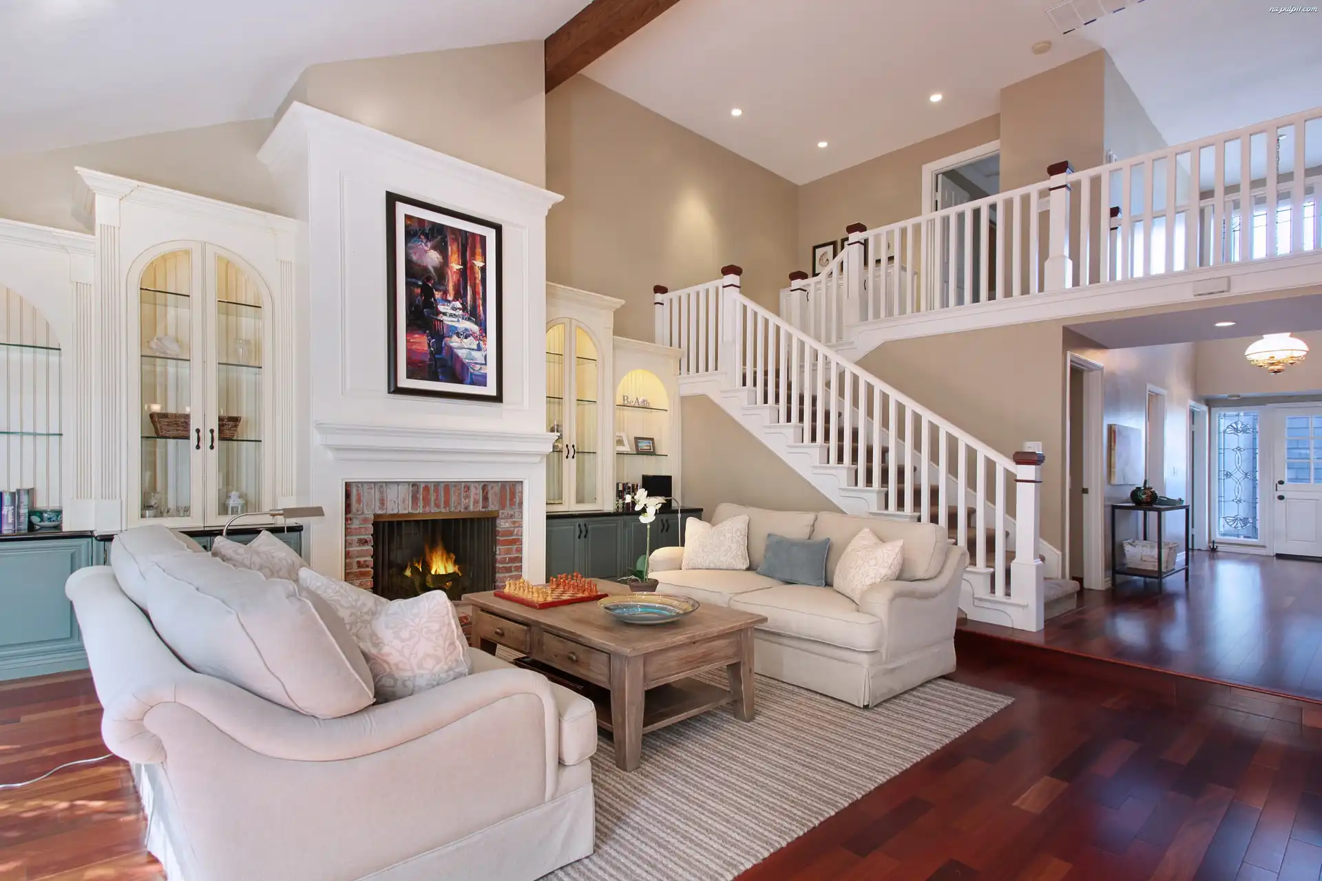 Schody, Kanapy, Jasne, Salon, Kominek Na Pulpit