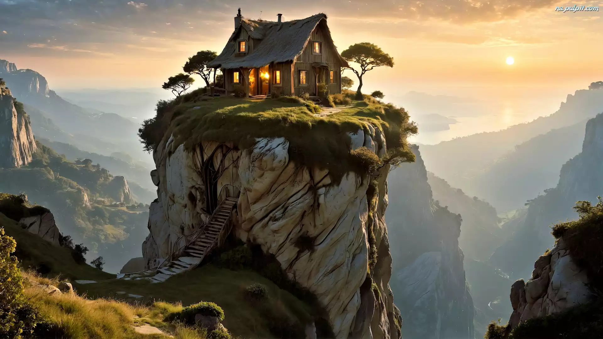 Góra, Skały Domek, Małe, Zima, Jeziorko Skała, Morze Kulki, Czerwone, Niebieskie 3D, Wektorowa Woda, Wodospad, Spieniona Jaskinia Wnętrza, Dom, Luksusowe Domki, Korsyka, Wyspa, Góry Betonowe, Schody Rzeka, Kamienny, Domy, Most Mieszkalne, Noc, Budynki Rzeczka, Pola, Łąki, Domy, Trawy Dom, Strzecha