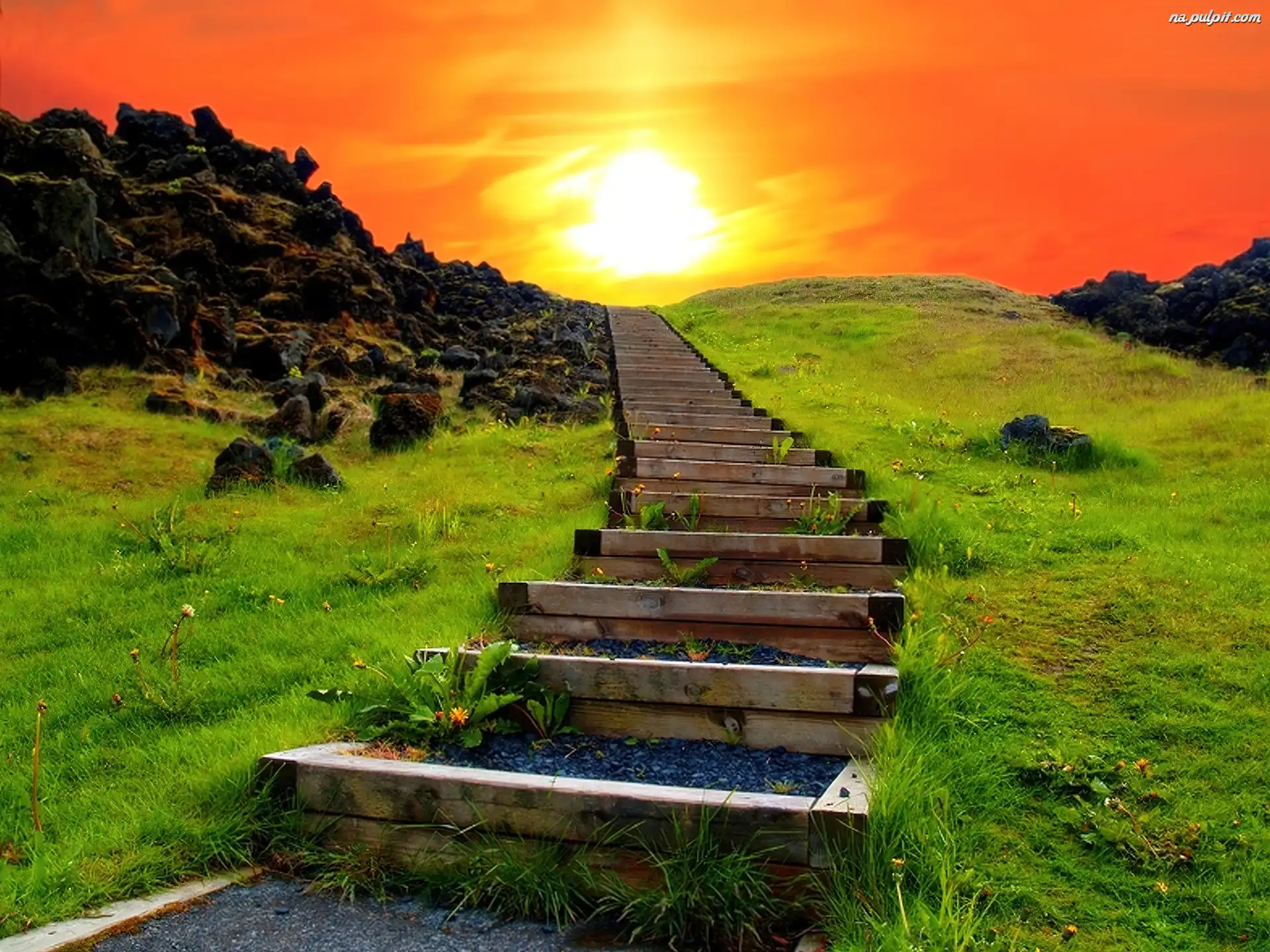 Schody, Słońca, Zachód, Łąka Na Pulpit
