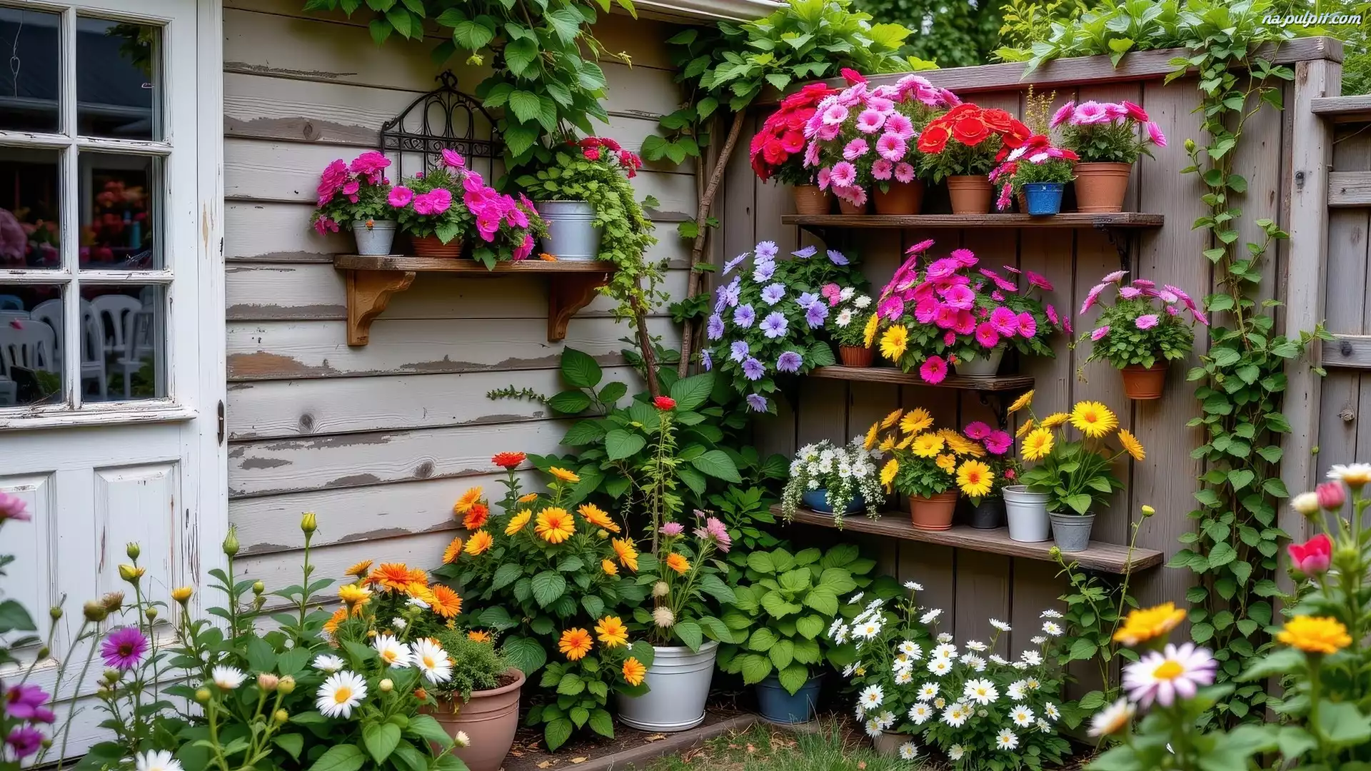 Kwiaty, Ściany, Półki, Ogródek, Kolorowe