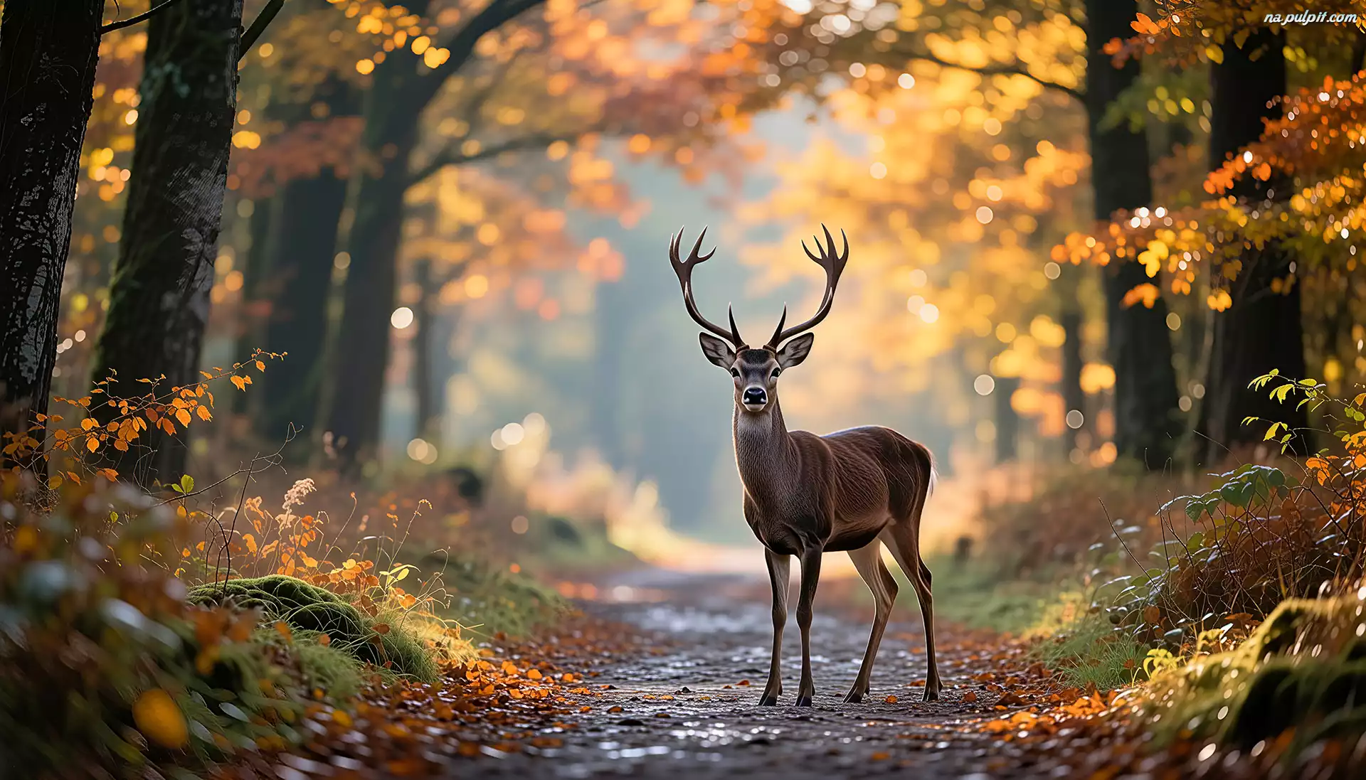 Jeleń, Ścieżka, Las, Grafika AI Na Pulpit