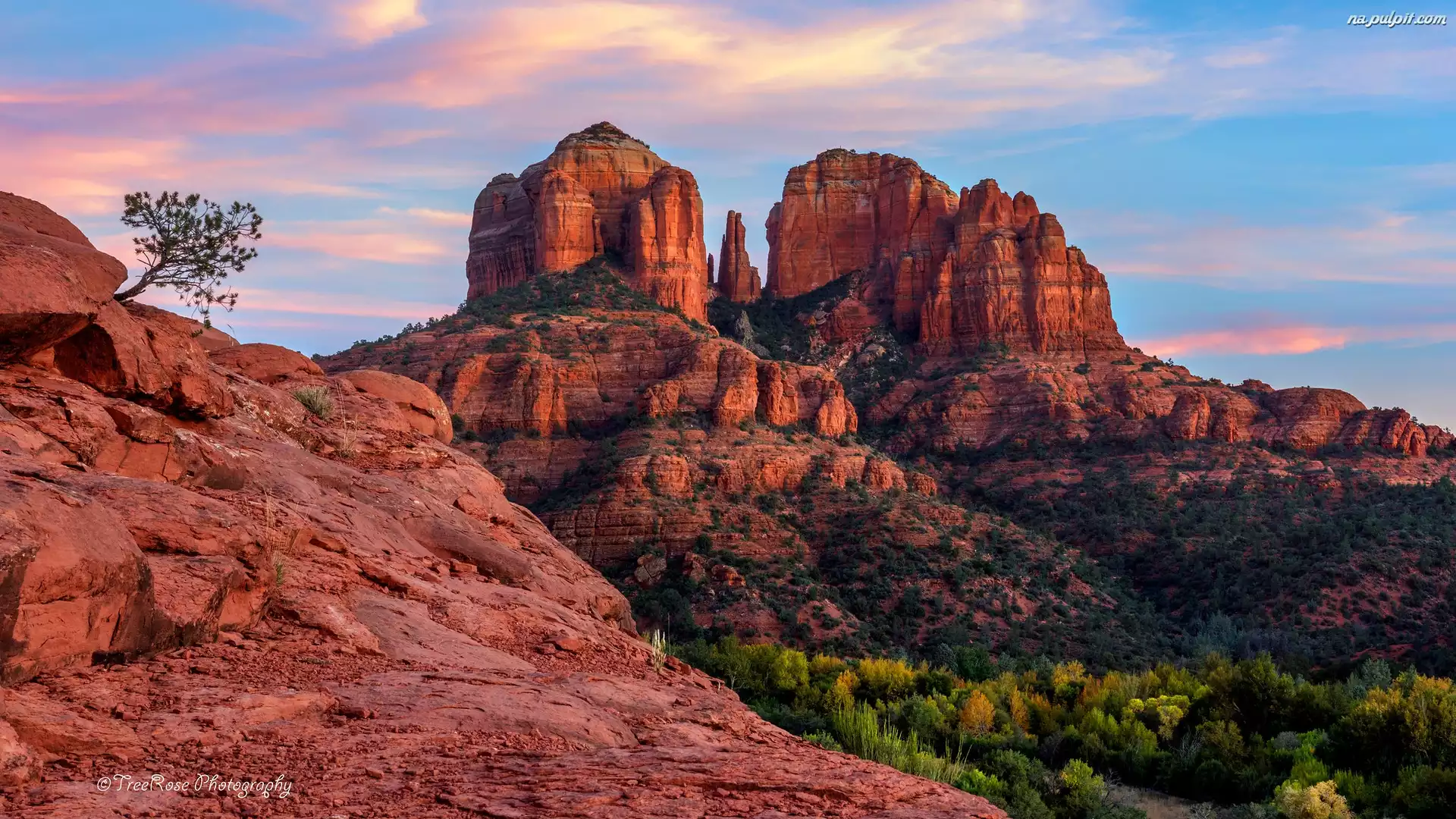 Czerwone, Stany Zjednoczone, Sedona, Skały, Arizona, Drzewa Na Pulpit