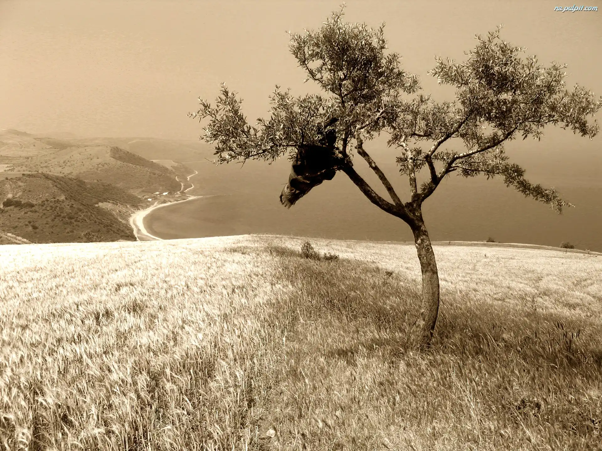 Wzgórze, Sepia, Drzewo Na Pulpit