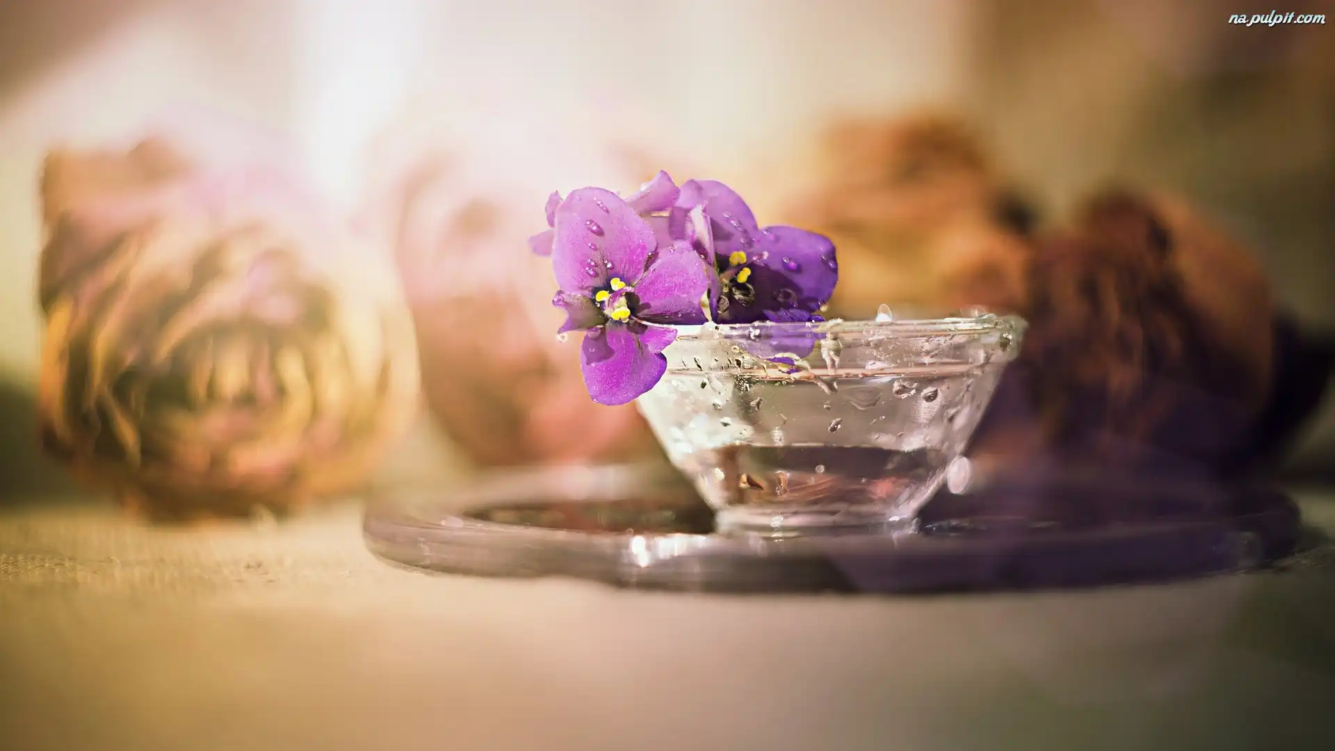 Sępolia, Fioletowe, Miseczka, Szklana, Kwiaty Na Pulpit