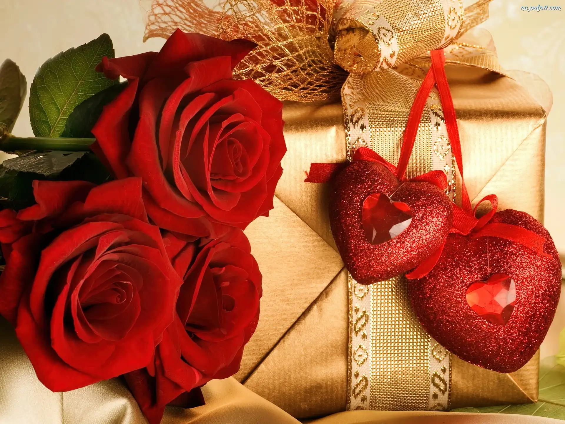 Serca, Róże, Czerwone, Prezent Na Pulpit