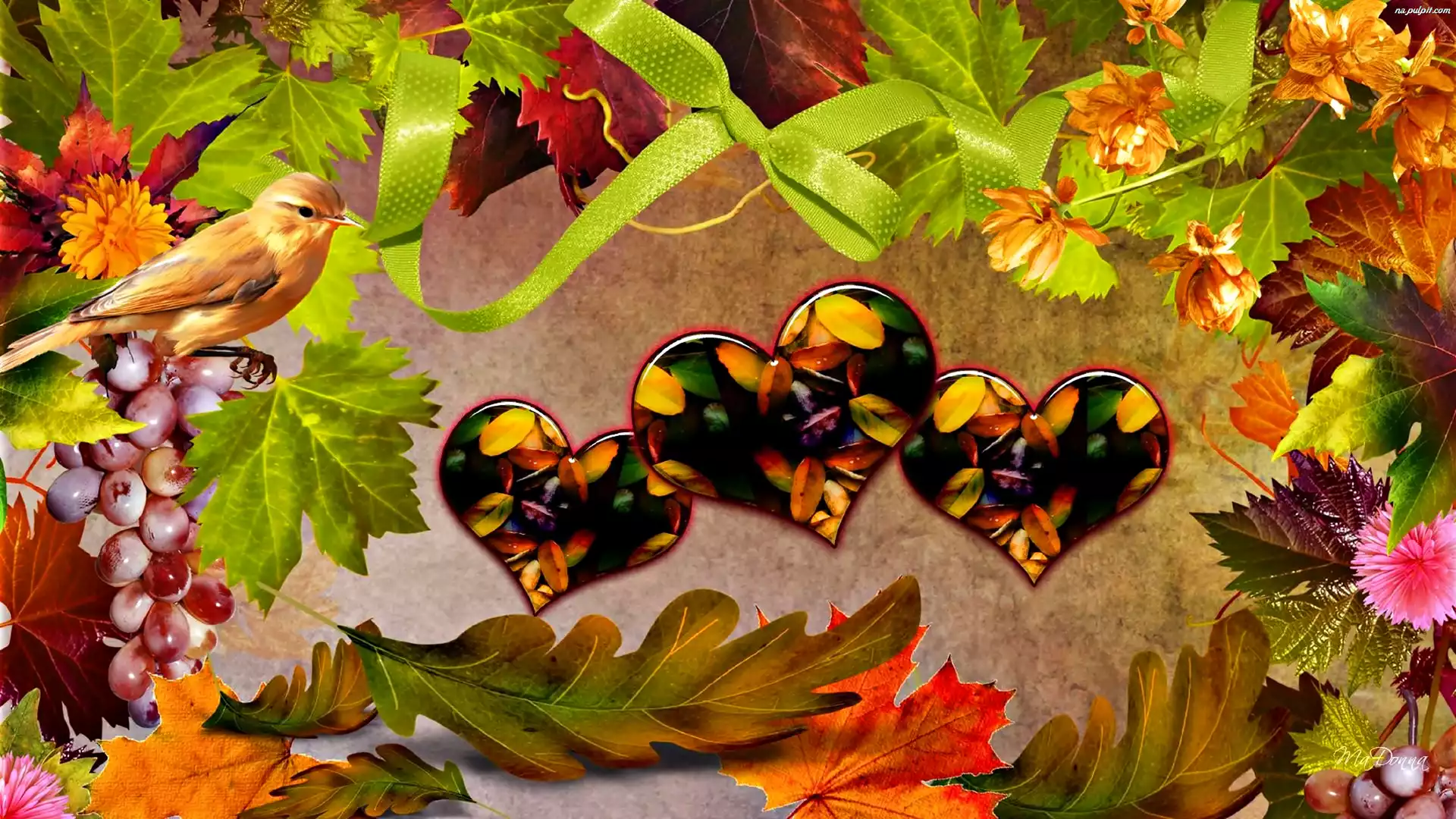 Serca, Liście, Jesienne, Ptaszek Na Pulpit