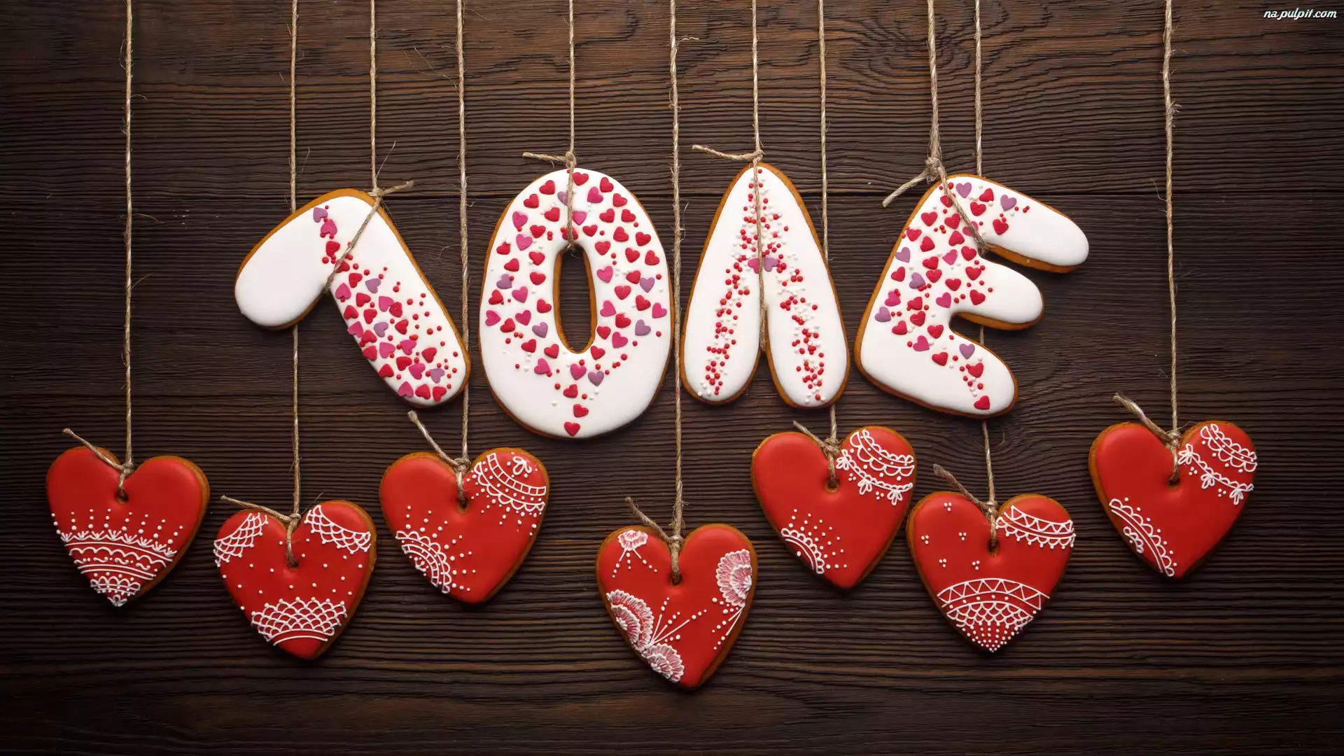 Serca, Sznurek, Deski, Napis, Pierniczki, Love Na Pulpit