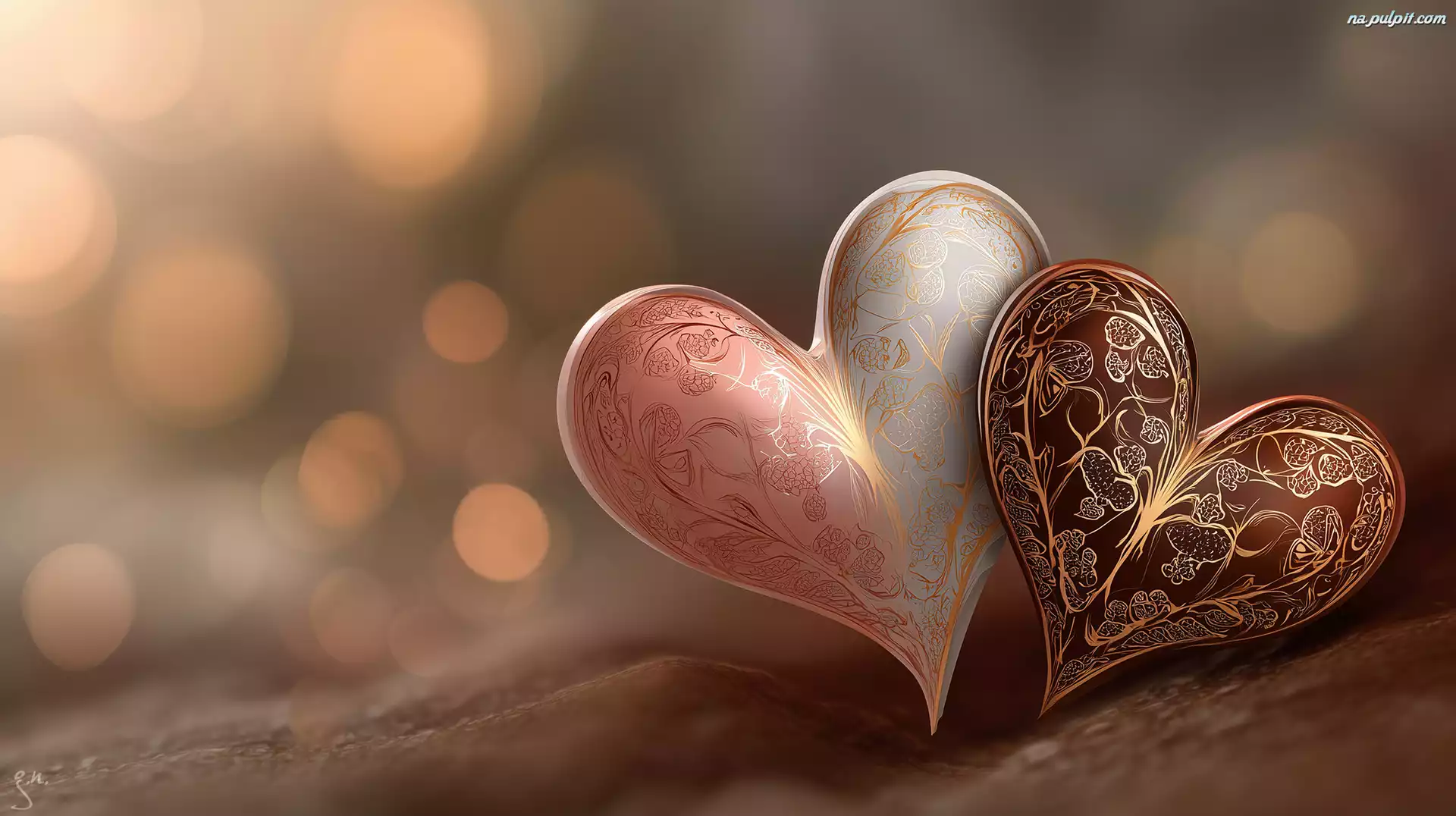 Dwa, Serca, Wzory, Grafika AI Na Pulpit