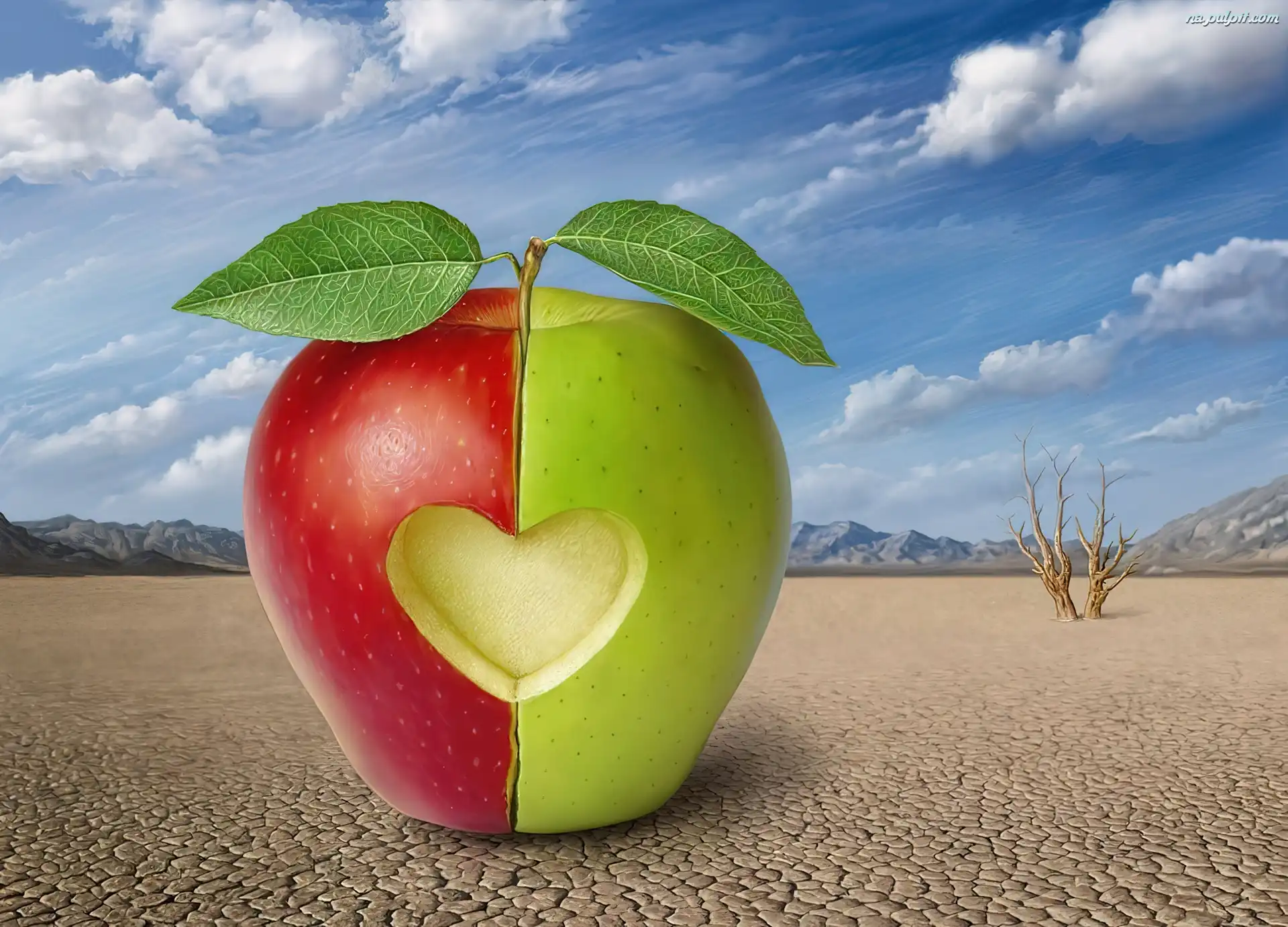Serce, Czerwone, Zielono, Jabłko Na Pulpit