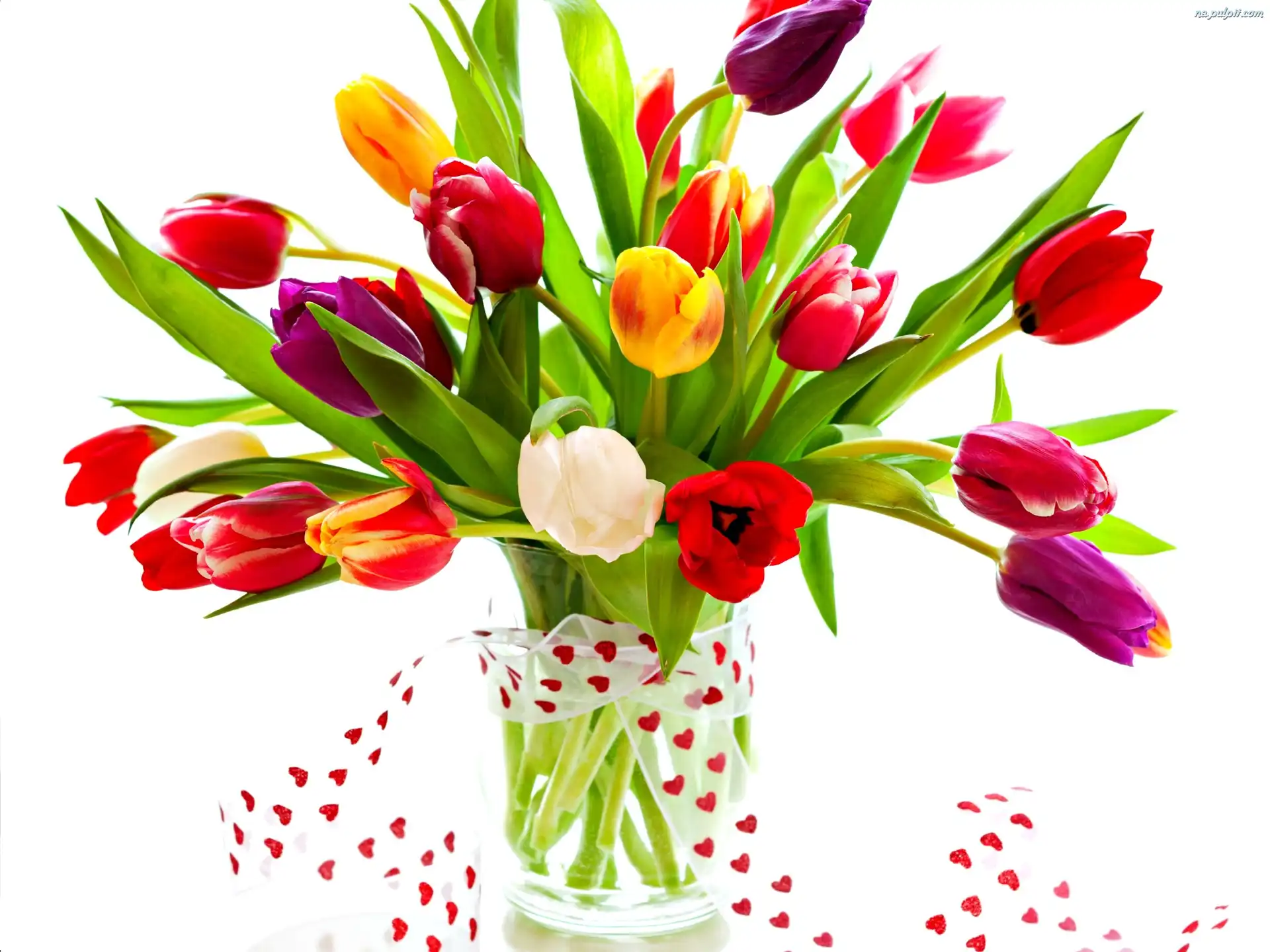 Serduszka, Tulipanów, Kolorowych, Bukiet, Wstążka Na Pulpit
