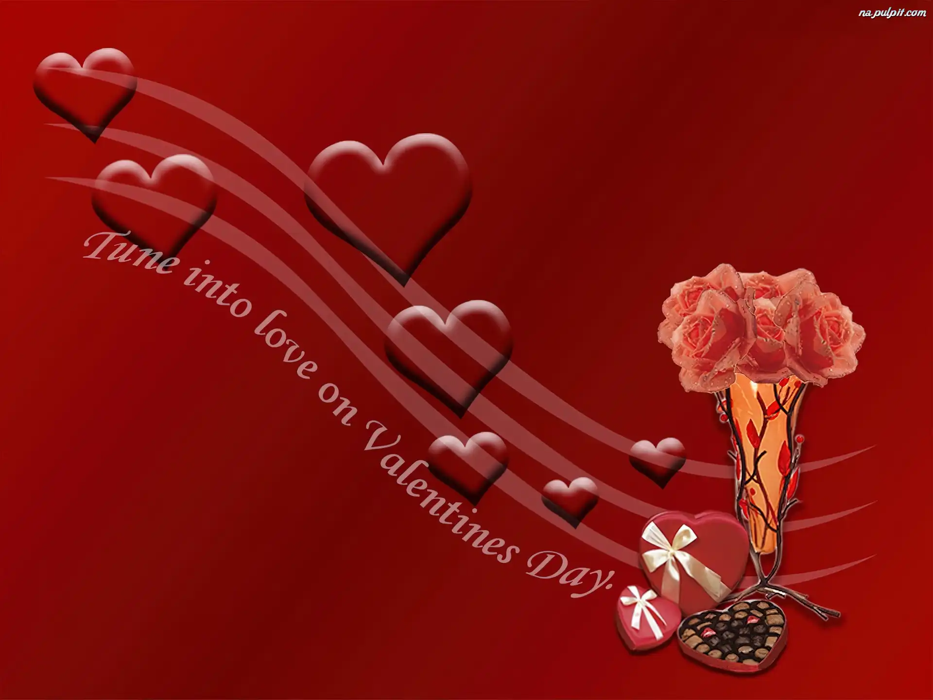 Serduszka, Walentynki, Miłość, Bukiecik, Czerwone, Róż Na Pulpit