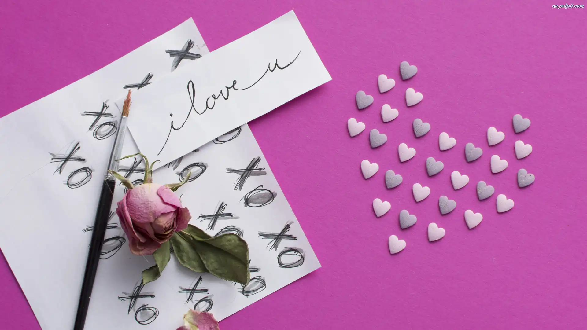 Serduszka, Pędzelek, Napis, Róża, Miłość, Kwiat Na Pulpit