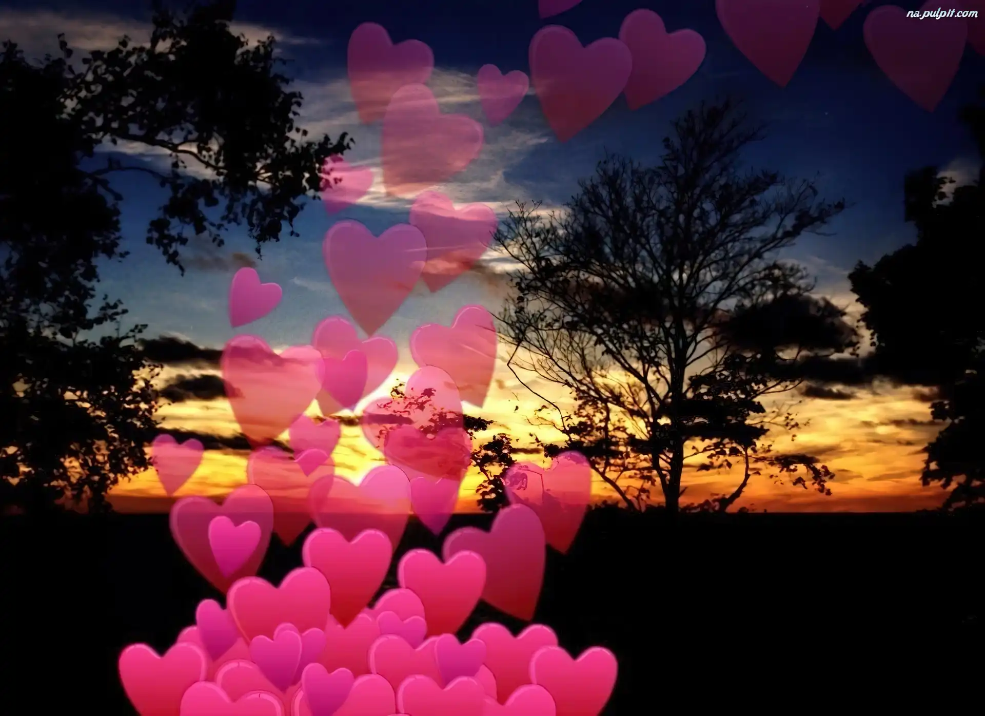 Serduszka, Słońca, Zachód, Różowe Na Pulpit