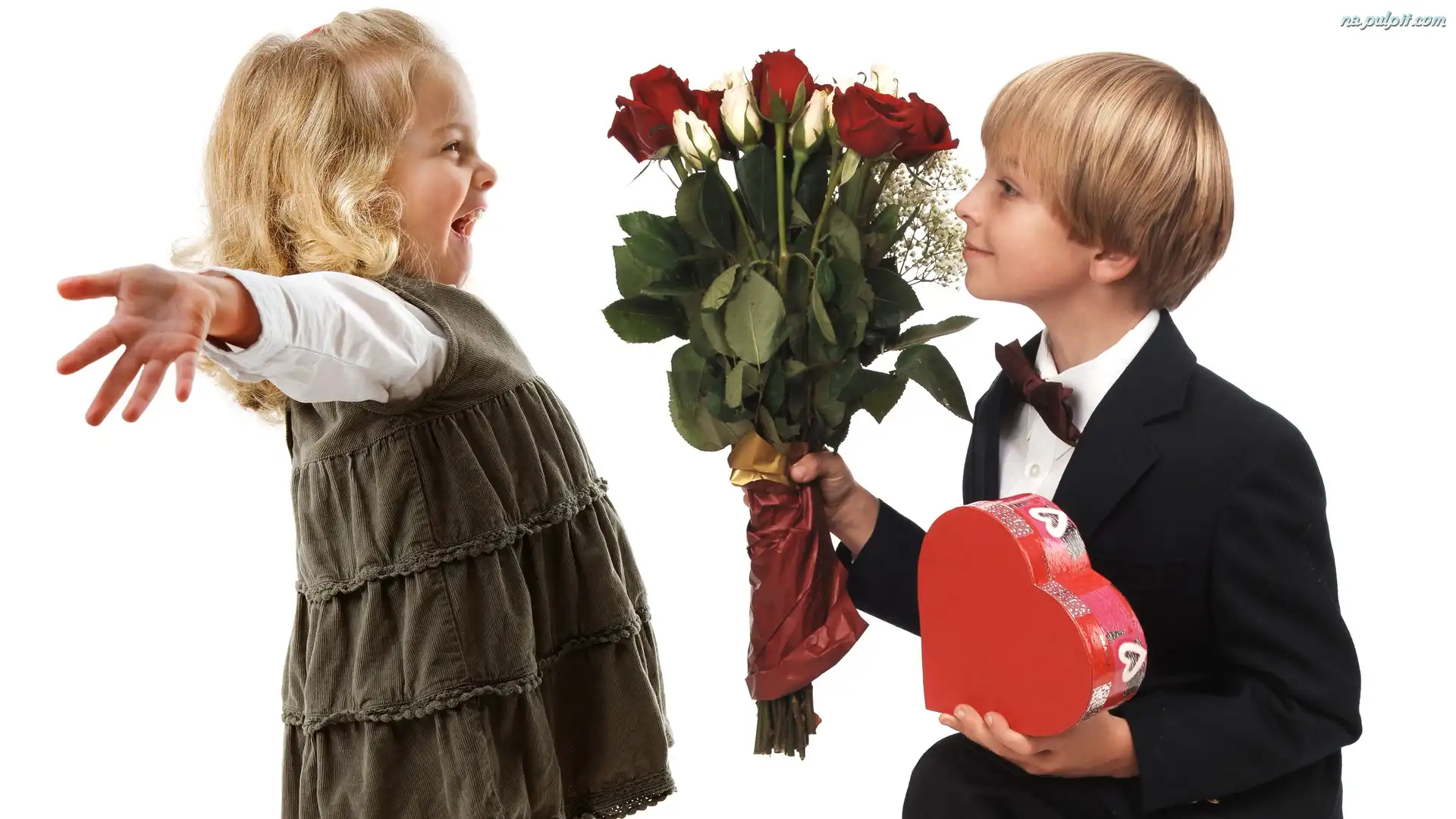 Serduszko, Chłopiec, Dziewczynka, Kwiaty