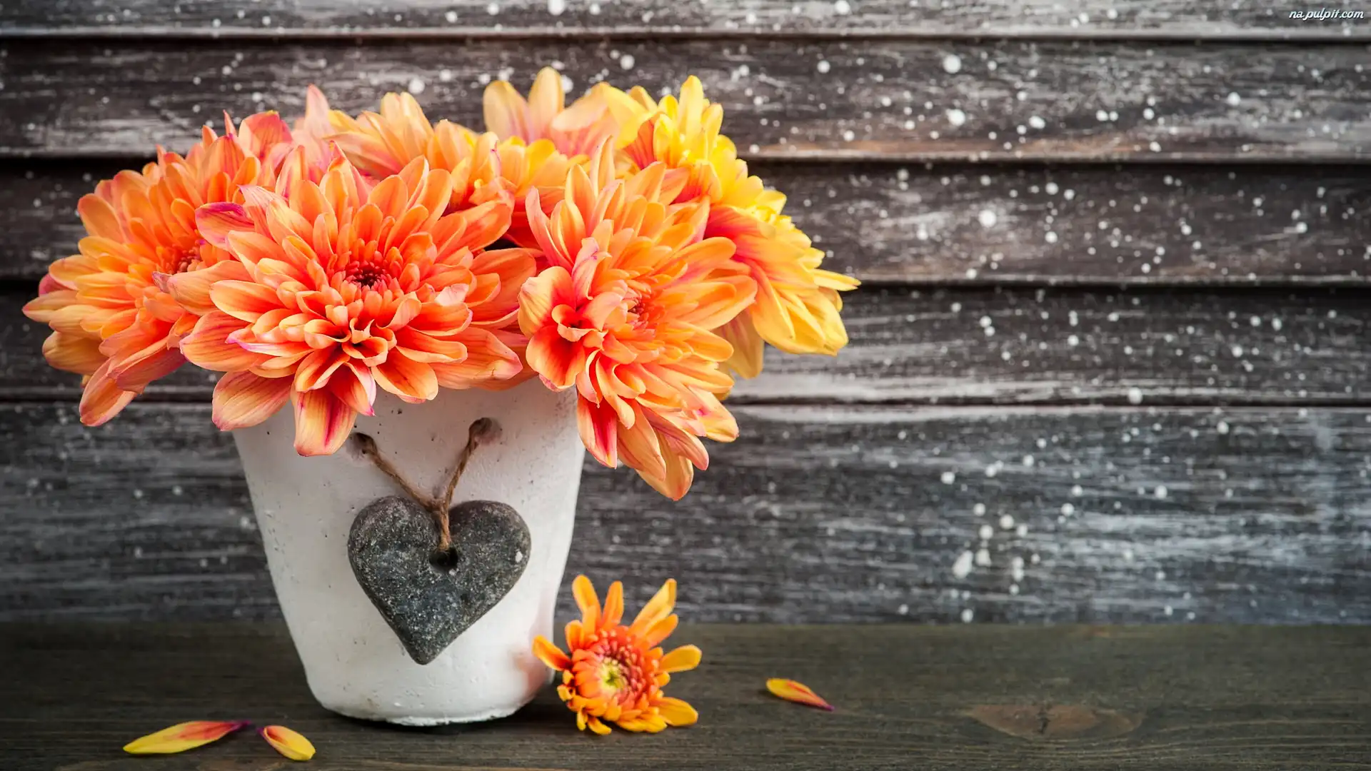 Serduszko, Chryzantemy, Pomarańczowe, Doniczka