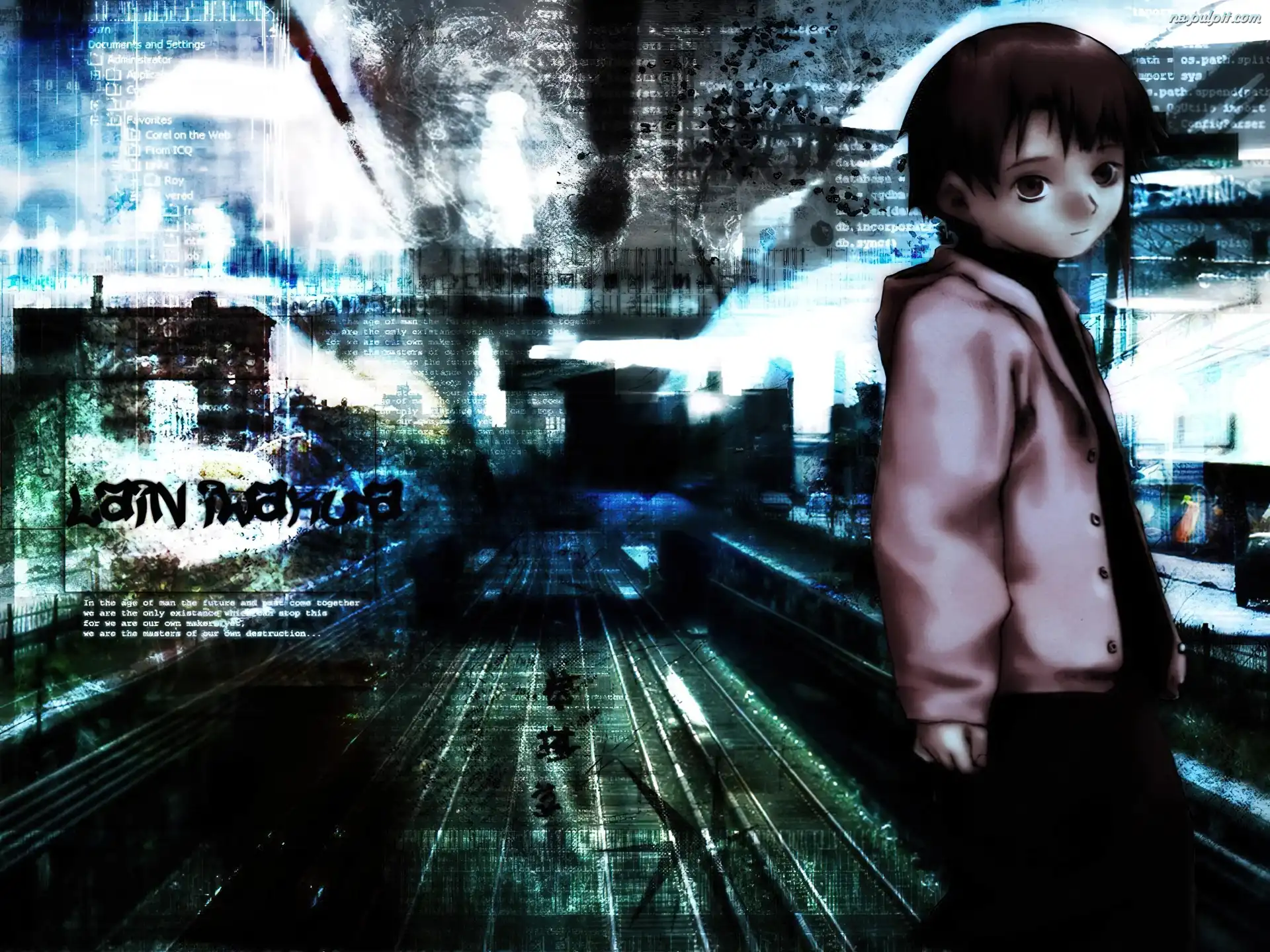 kokardka, Serial Experiments Lain, czerwone włosy Serial Experiments Lain, krótkie włosy pajęczyna, Serial Experiments Lain, okno Serial Experiments Lain, profil twarzy rude włosy, Serial Experiments Lain, tekst Serial Experiments Lain, czerwone oczy tekst, Serial Experiments Lain, ludzie Serial Experiments Lain, dzieciaki istoty, Serial Experiments Lain, samochody koło, Serial Experiments Lain, oko teczka, Serial Experiments Lain, dziewczyna Serial Experiments Lain, pusta ulica zegarek, Serial Experiments Lain, smutna mina nożyczki, Serial Experiments Lain, pluszak