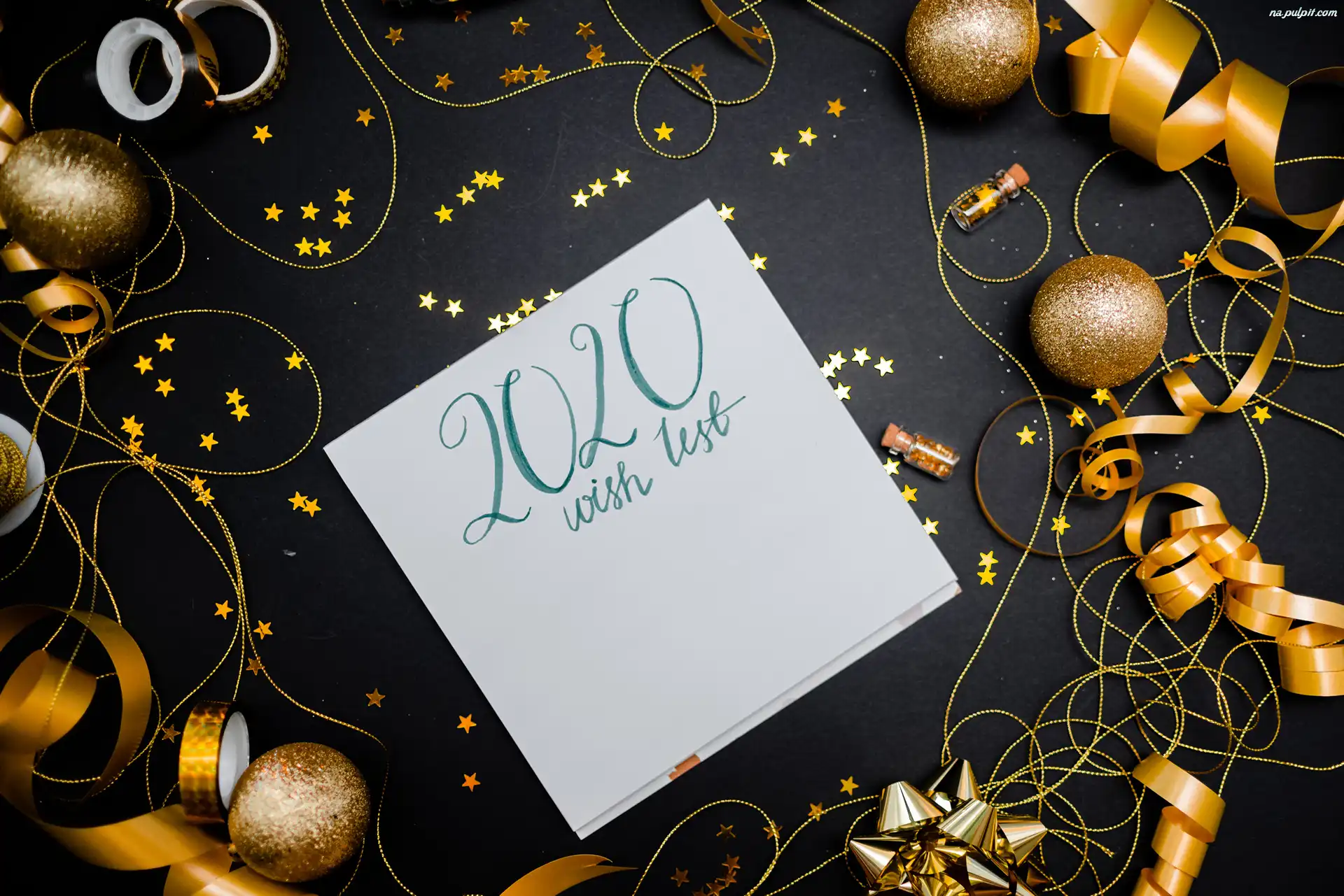 Serpentyny, Nowy Rok, Kartka, Bombki