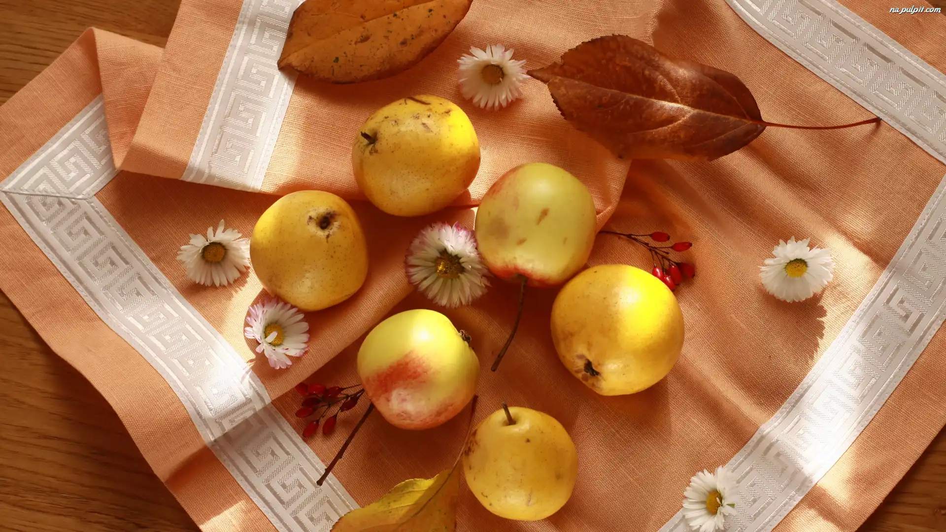 Serwetka, Stokrotki, Liście, Jabłka, Kompozycja, Gruszki Na Pulpit